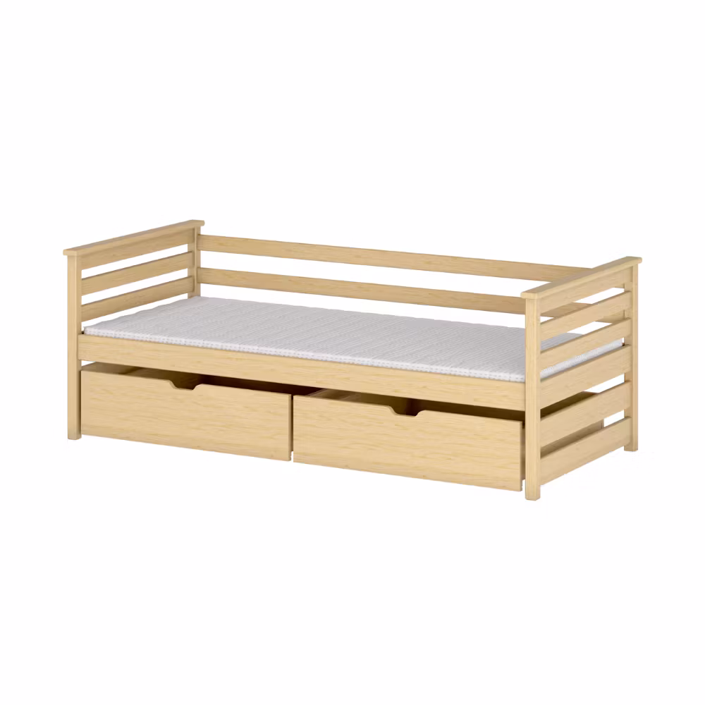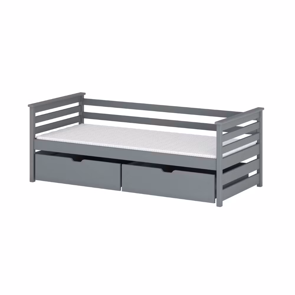 - Farve: vælg mellem natur (lakeret), hvid, grå og antracit. Alle natur senge er behandlet med vandbaseret lak. Skriv en kommentar ved kassen, hvis du ønsker en naturfarvet seng, der er ubehandlet.