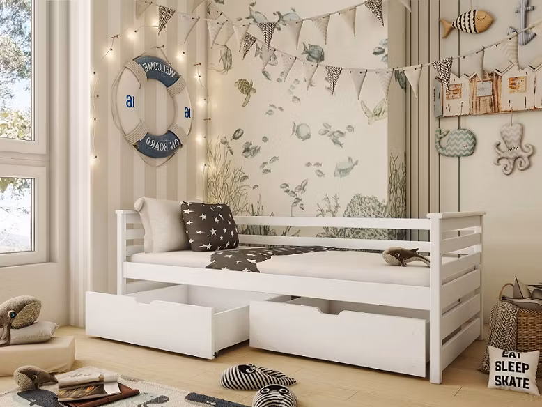 En stabil og solid børneseng i tidløst skandinavisk design, som ikke kun er et hyggeligt sted at sove, men også en pæn indretningsdetalje på børneværelset!