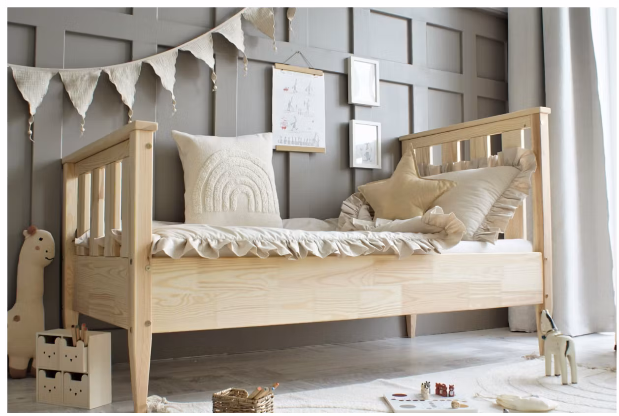 Fyrretræ har den fordel i forhold til massivt træ, at det ikke knækker, og at der ikke er nogen knaster, der påvirker dets udseende. En stabil og smuk seng af høj kvalitet!