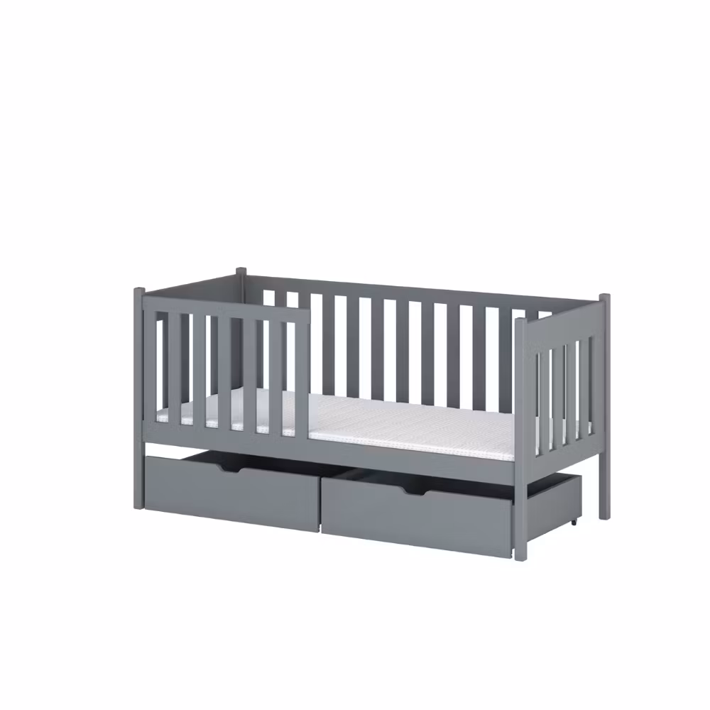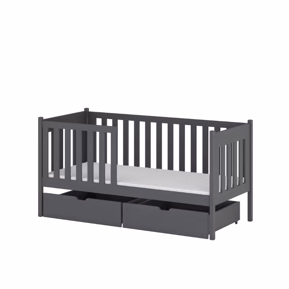 - Farve: vælg mellem natur (lakeret), hvid, grå og antracit. Alle natur senge er behandlet med vandbaseret lak. Skriv en kommentar ved kassen, hvis du ønsker en naturfarvet seng, der er ubehandlet.