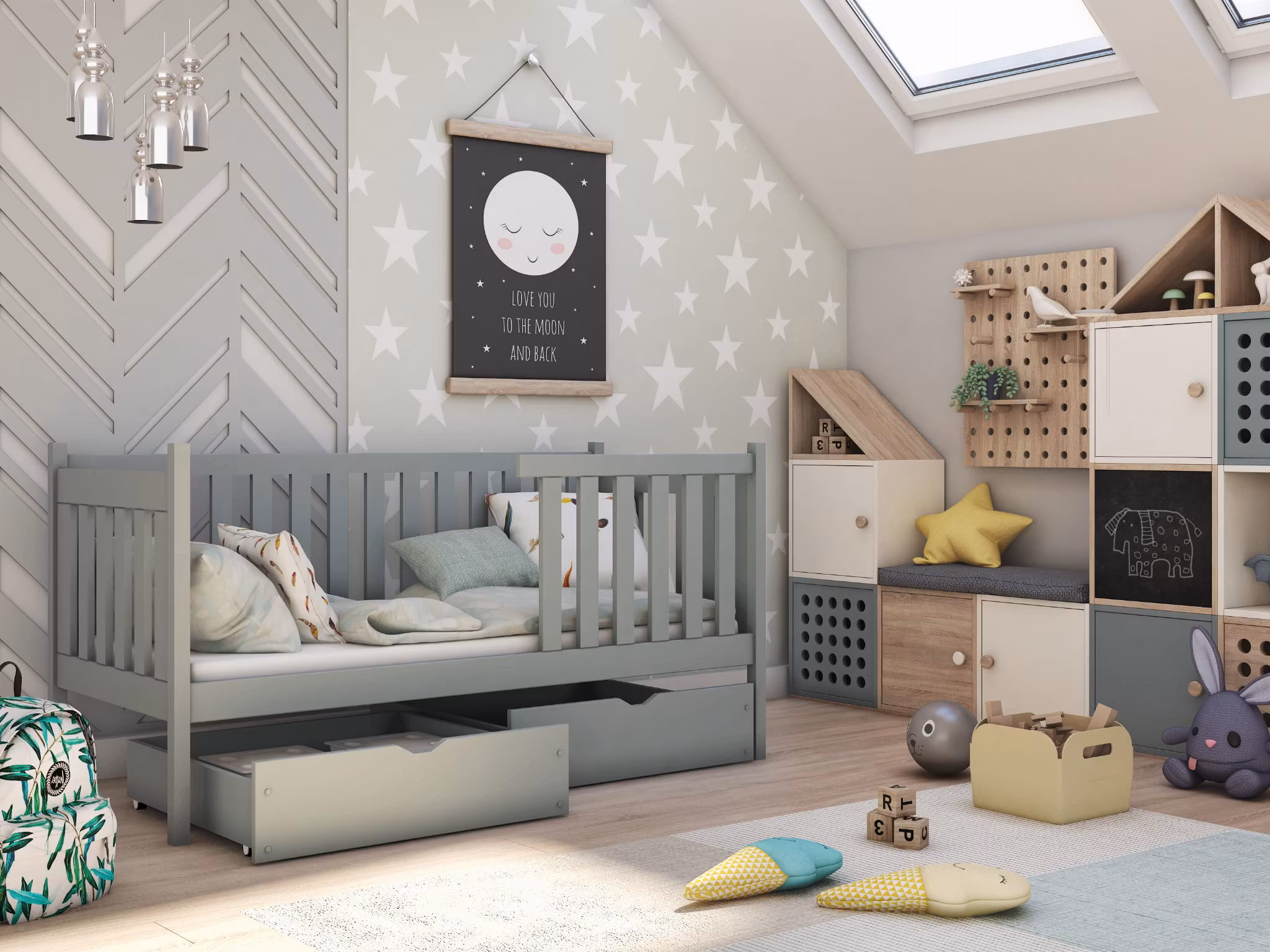En stabil og solid børneseng i tidløst skandinavisk design, som ikke kun er et hyggeligt sted at sove, men også en pæn indretningsdetalje på børneværelset!
