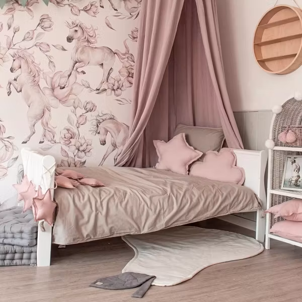 En seng i ren, skandinavisk stil, der passer overalt og i alle typer rum. Du kan nemt dekorere den med flotte vimpler eller lyssnor for mere effekt.