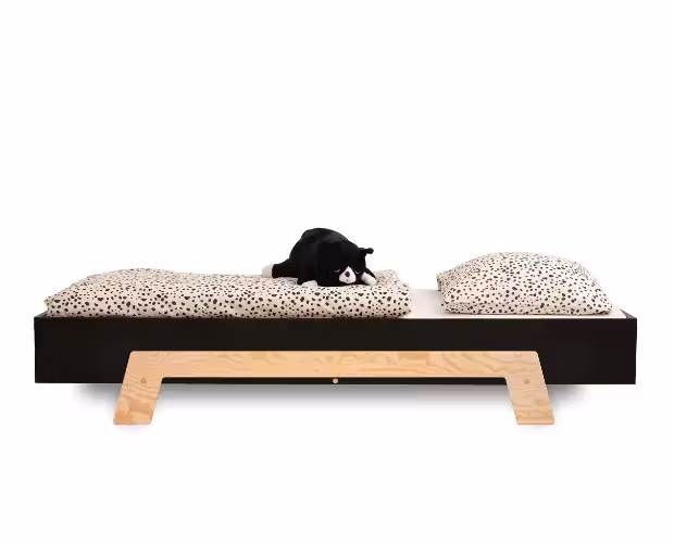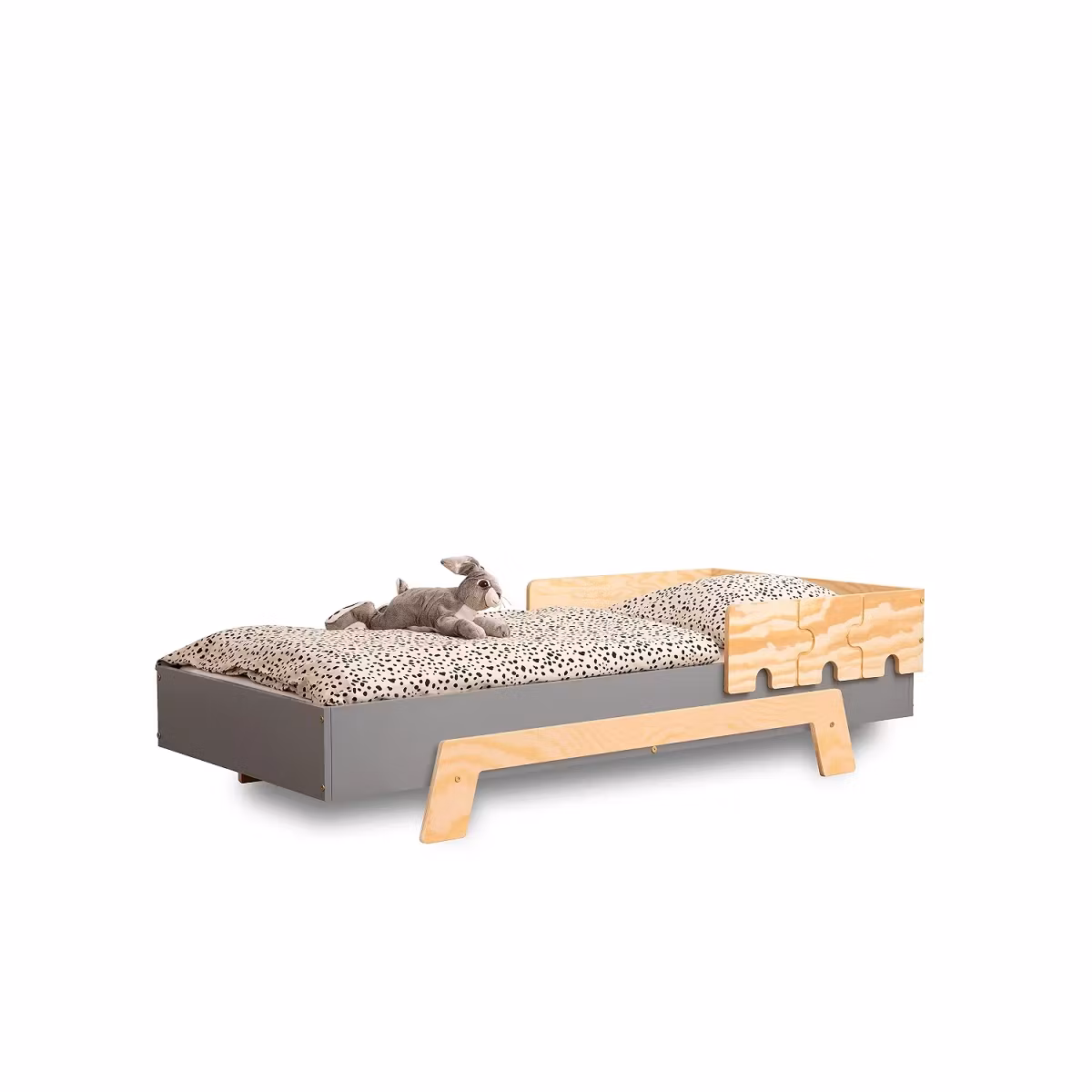 En stabil og solid børneseng med puslespilsformede ben, som ikke kun er et hyggeligt sted at sove, men også en pæn indretningsdetalje på børneværelset!
