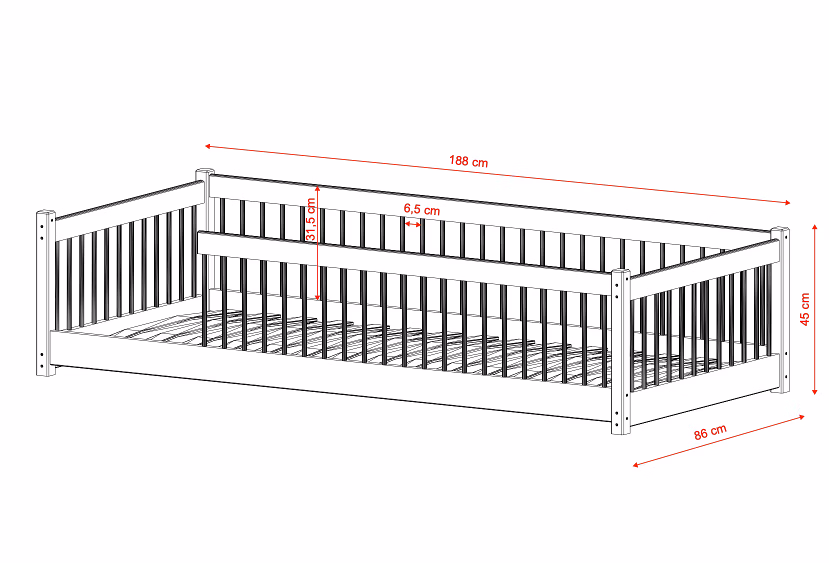 Dette er en seng, der er designet og tilpasset til børn. Den leveres usamlet og bør samles i det rum, hvor den skal bruges.