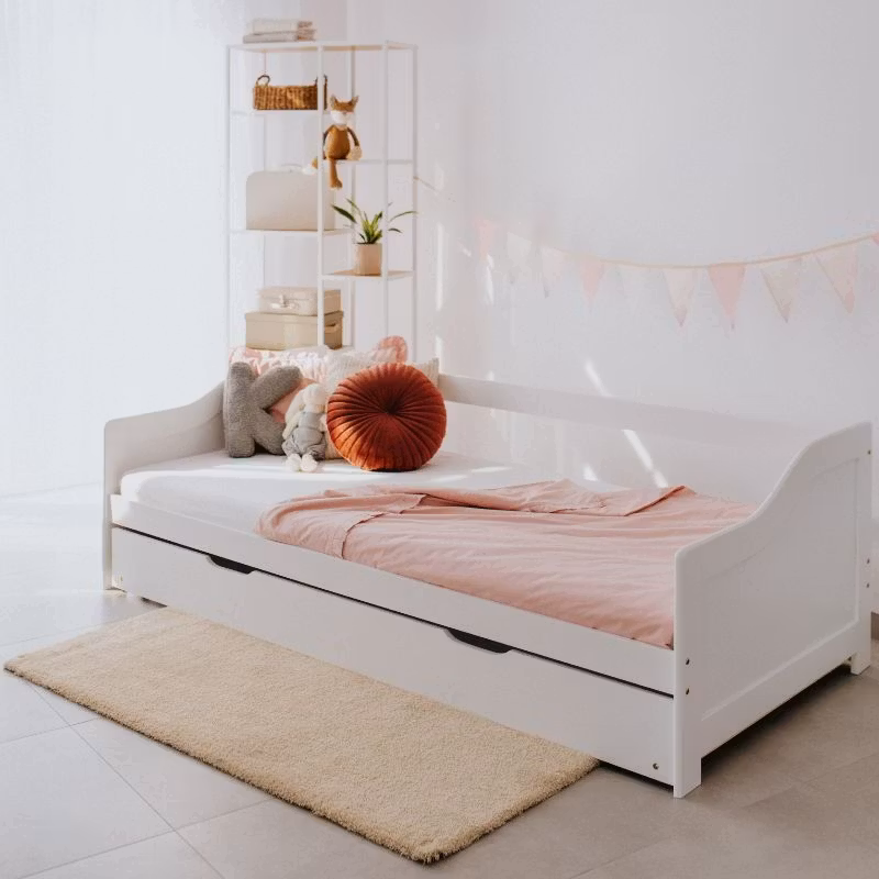 En stabil og solid børneseng i tidløst skandinavisk design, som ikke kun er et hyggeligt sted at sove, men også en pæn indretningsdetalje på børneværelset!