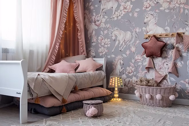 En seng i ren, skandinavisk stil, der passer overalt og i alle typer rum. Du kan nemt dekorere den med flotte vimpler eller lyssnor for mere effekt.