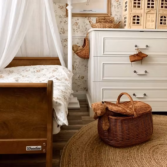 En vidunderlig smuk klassisk juniorseng. Denne seng vil løfte dit børneværelse til uanede højder. Både hyggelig og behagelig at sove i, som en perfekt seng at lege i eller bygge hyggehjørnet op.