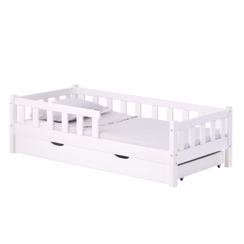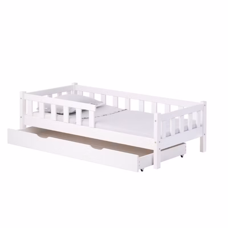I forhold til massivt træ har fyrretræ den fordel, at det ikke knækker og ikke indeholder knaster, der påvirker dets udseende. En stabil og smuk seng af høj kvalitet!