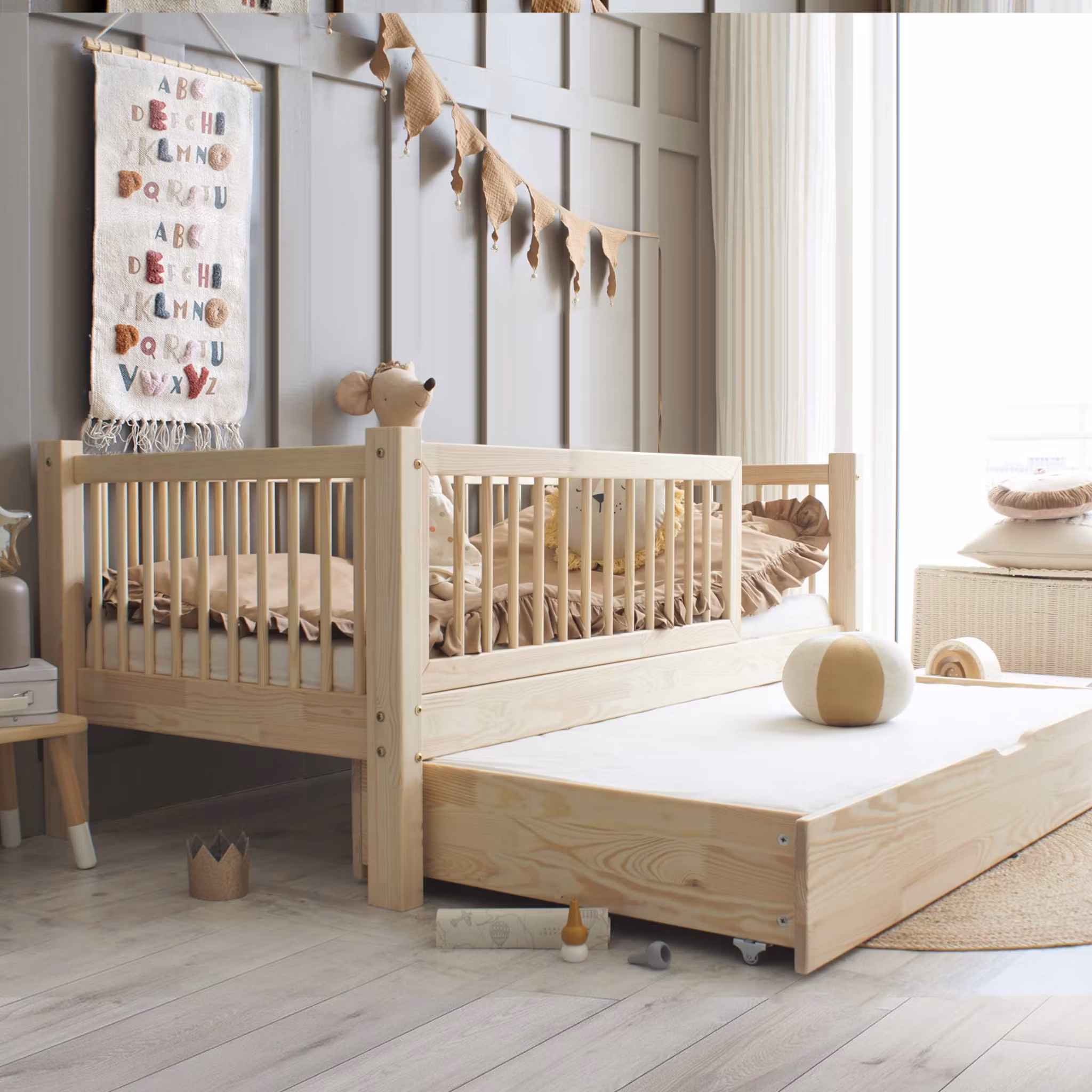 Natur børneseng Asta 90x190 cm med udtræksseng