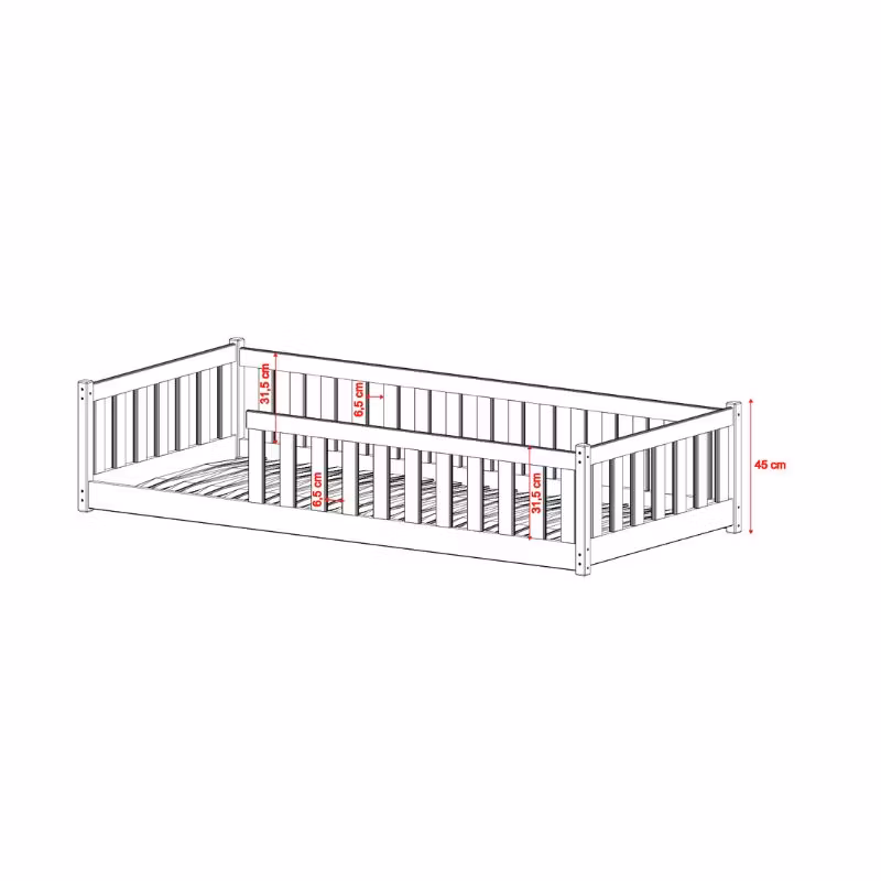 - Sengens samlede højde: 45 cm