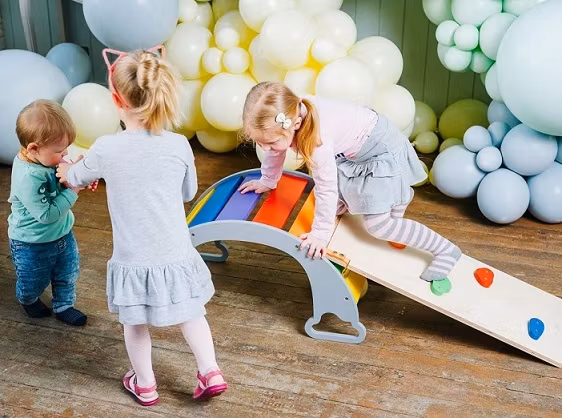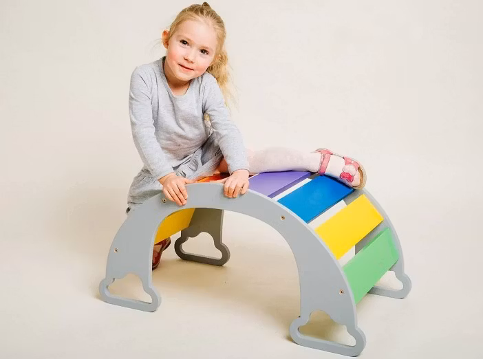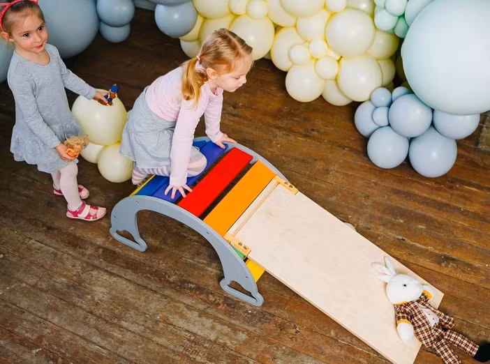 Den eneste grænse for, hvordan du kan bruge dette klatrestativ, er din fantasi! Brug rampen som rutsjebane for de mindste. Vend den om og svøm salabim, og du har en gynge! Læg den på siden mod en væg, og du får en legetøjsopbevaring! De større børn kan bruge klatrestativet som mål.