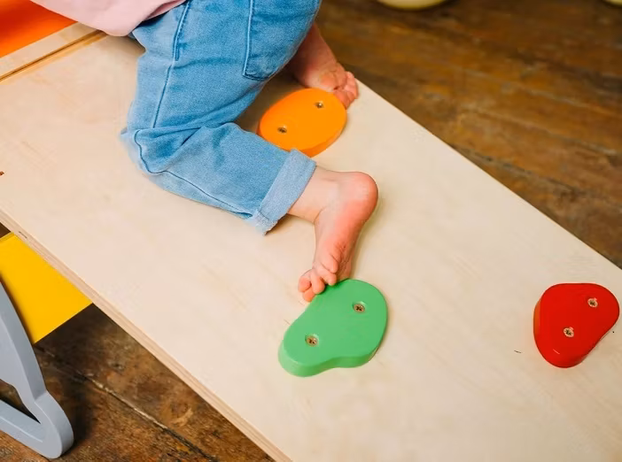 Den eneste grænse for, hvordan du kan bruge dette klatrestativ, er din fantasi! Brug rampen som rutsjebane for de mindste. Vend den om og svøm salabim, og du har en gynge! Læg den på siden mod en væg, og du får en legetøjsopbevaring! De større børn kan bruge klatrestativet som mål.