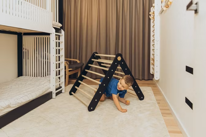 Hvis du kun skal købe ét aktivitetslegetøj, er dette det, du skal købe! Klatretrekanten fremmer udviklingen af motorik, koordination, balance og styrke gennem aktiv leg.