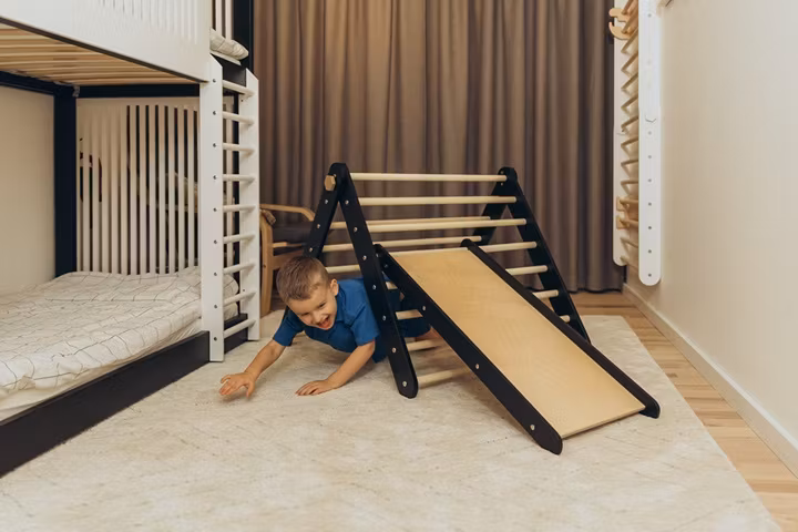 En fantastisk klatretrekant Pikler med rutsjebane fra Duck Woodworks!