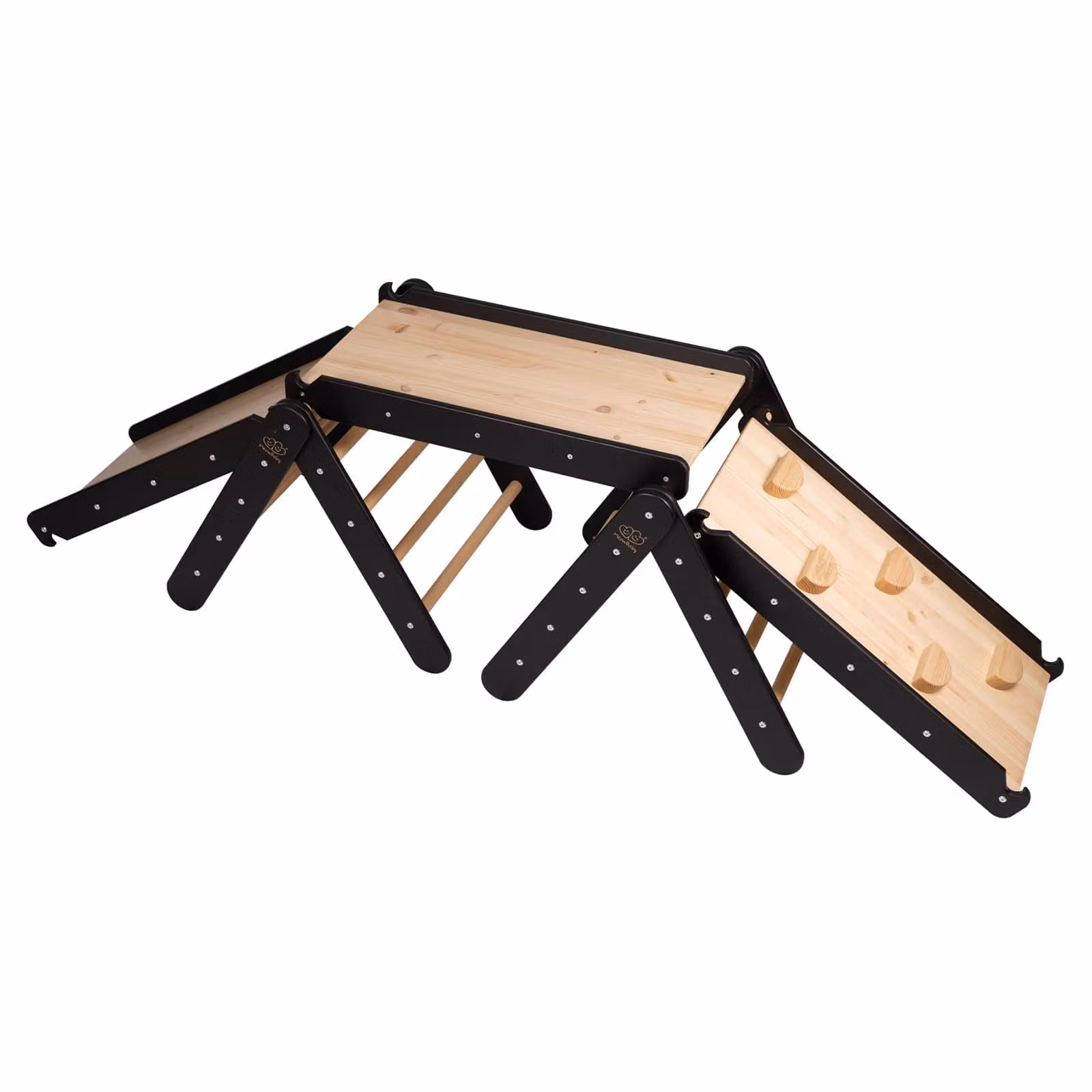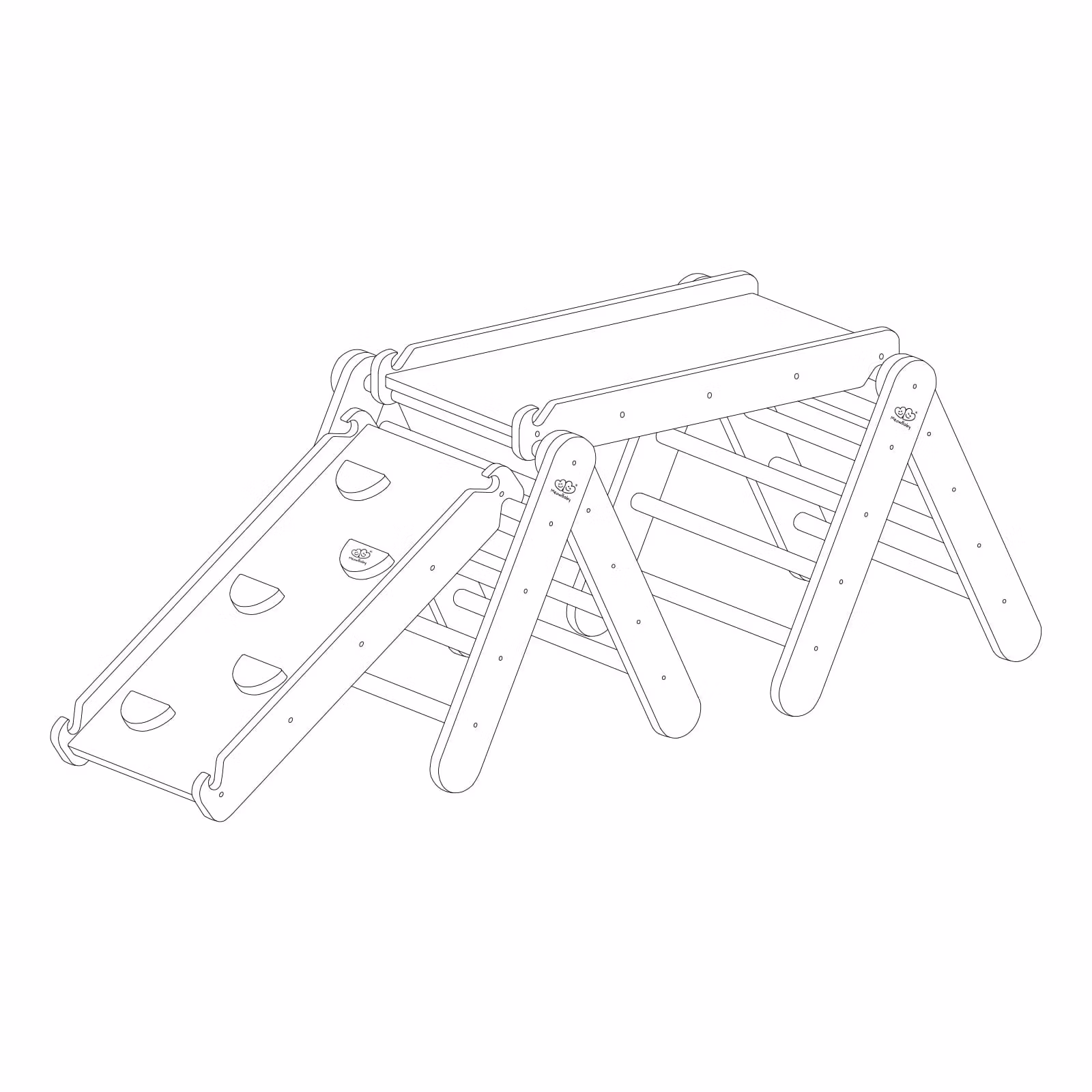 Multifunktionelt klatresæt bestående af to klatretrekanter med to dobbeltsidede ramper fra det populære Meow!