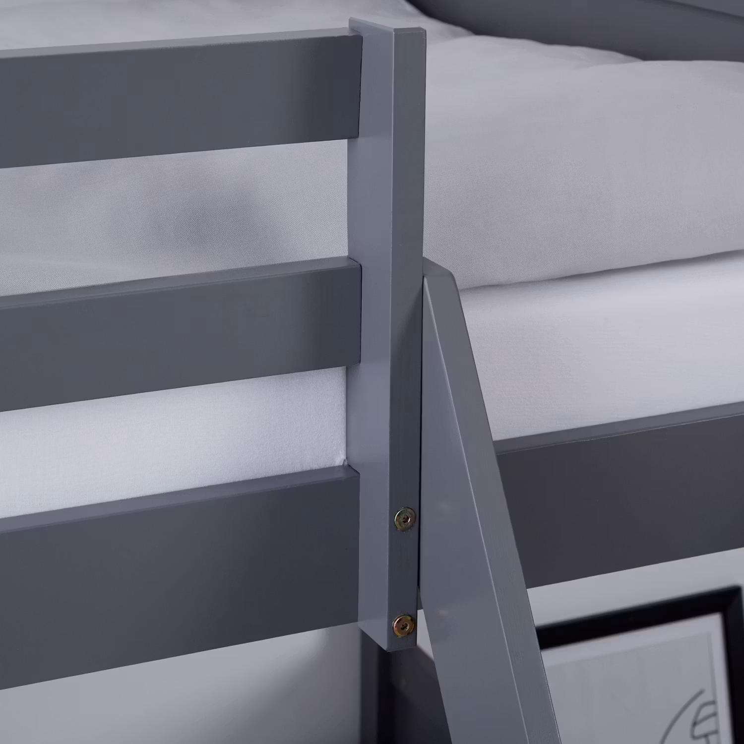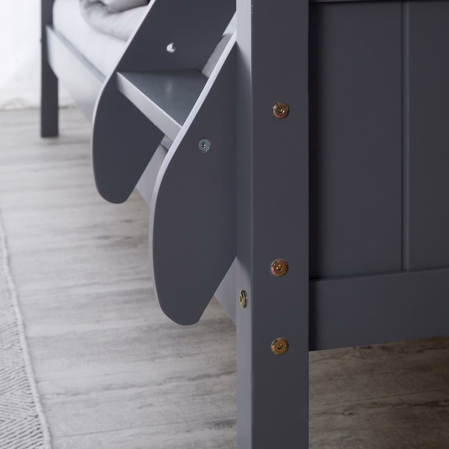 En køjeseng er praktisk enten til søskende, der deler værelse, eller til barnet, der ofte vil have venner til overnatning. At finde en seng, der både er praktisk og flot, er ikke let, men her er svaret på det. Øverste del er udstyret med solide sikkerhedskanter hele vejen rundt, og alle kanter er afrundede, alt sammen for dit barns bedste.