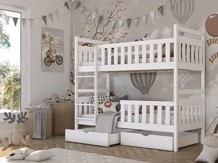 Denne fantastiske køjeseng Misty er håndlavet med stor passion i fyrretræsfiner af høj kvalitet.