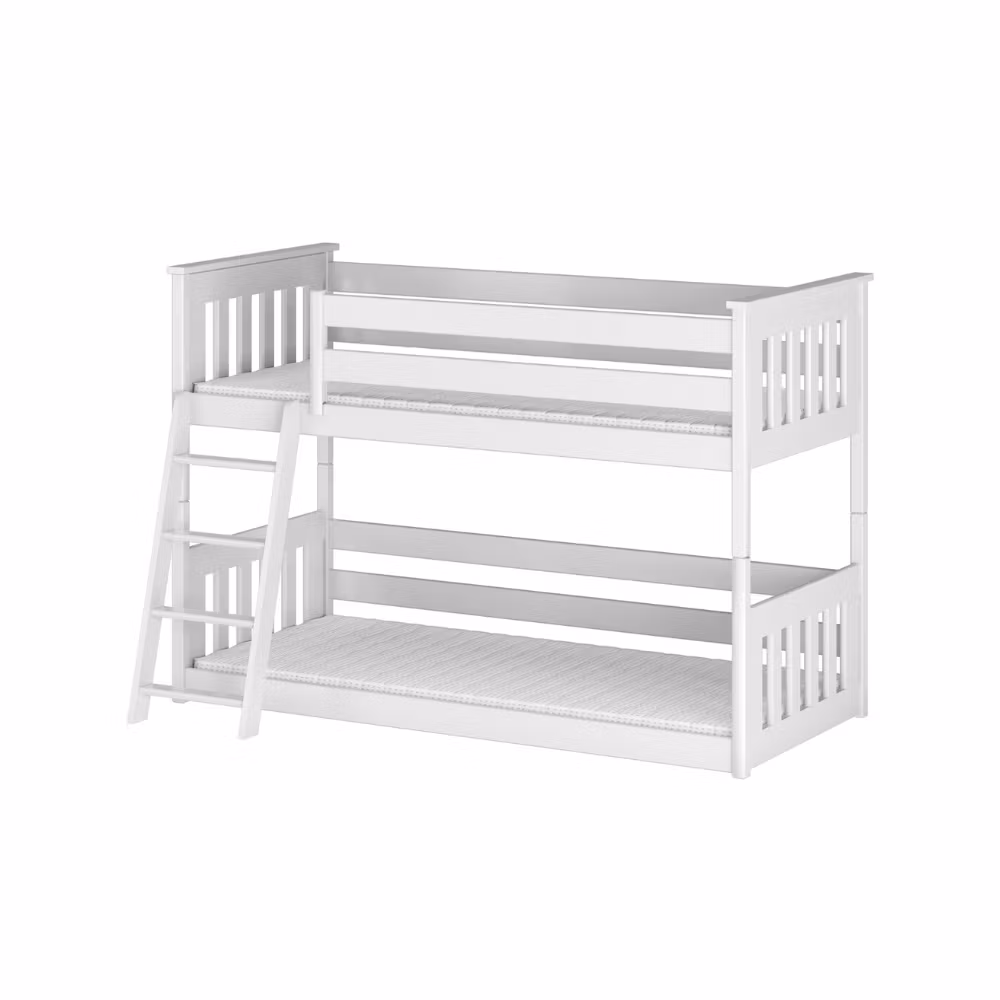 Sengene kommer fra vores fabrik i Europa, som har høje kvalitetskrav og kontrollerer hvert trin fra tømmeret kommer ind på fabrikken, til et færdigt produkt går. Malingen er organisk, vandbaseret og overholder standarden EN 71-3:2019.