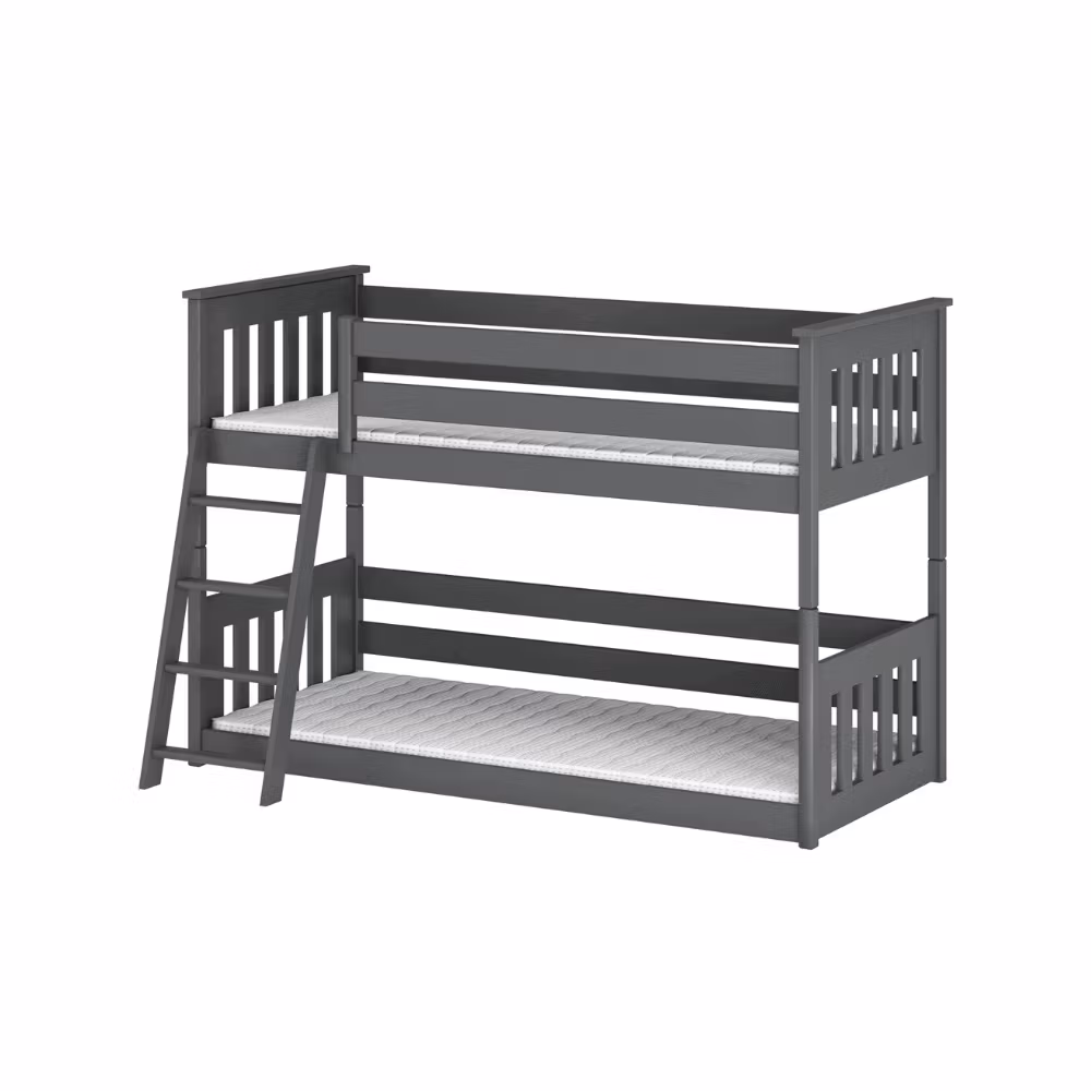 - Farve: vælg mellem natur (lakeret), hvid, grå og antracit. Alle natur senge er behandlet med vandbaseret lak. Skriv en kommentar ved kassen, hvis du ønsker en naturfarvet seng, der er ubehandlet.