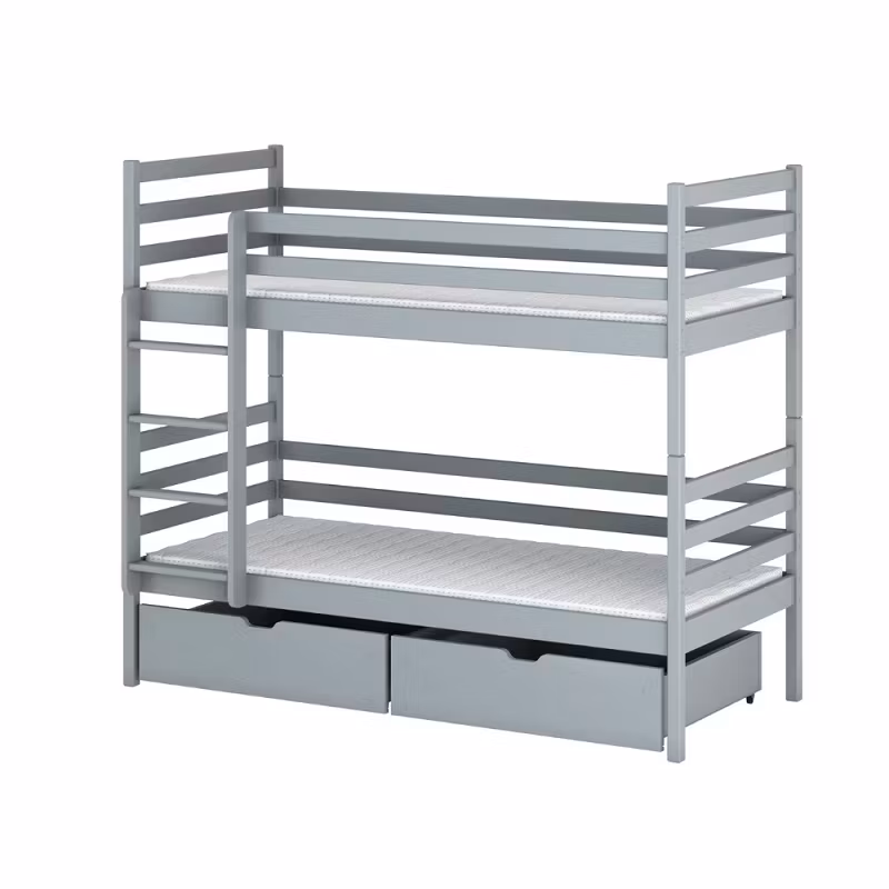 Sengene kommer fra vores fabrik i Europa, som har høje kvalitetskrav og kontrollerer hvert trin fra tømmeret kommer ind på fabrikken, til et færdigt produkt går. Malingen er organisk, vandbaseret og overholder standarden EN 71-3:2019.