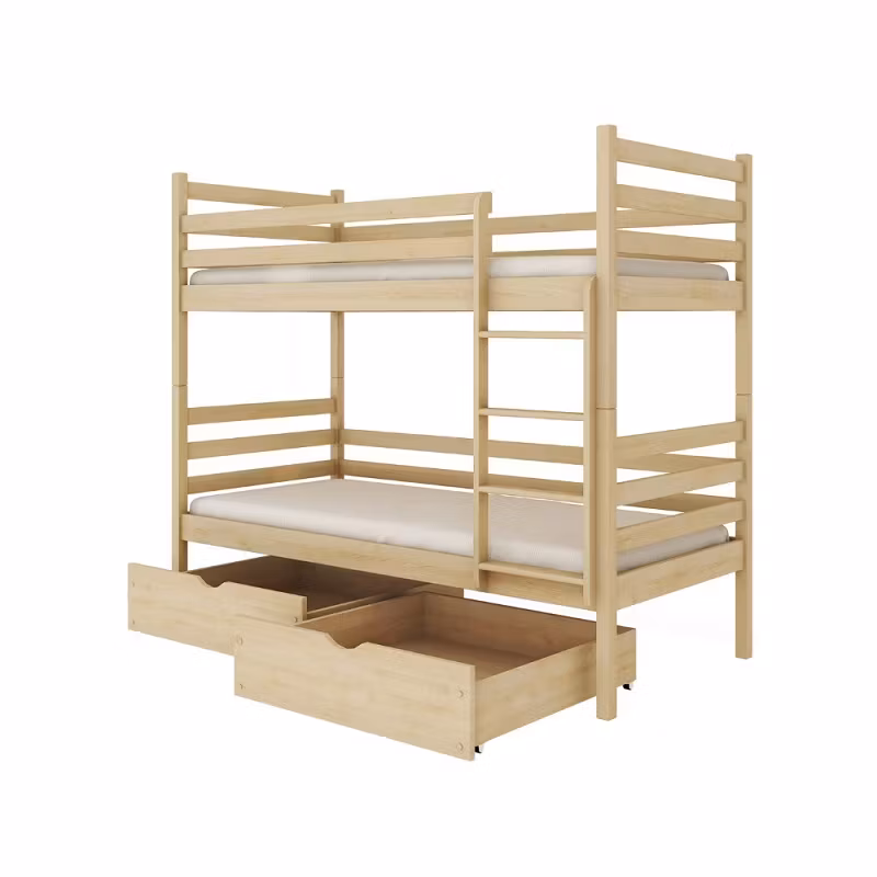 Denne fantastiske køjeseng Naomi er håndlavet med stor passion i fyrretræsfiner af høj kvalitet.