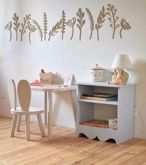 Smukt sengebord i romantisk stil til børneværelset!