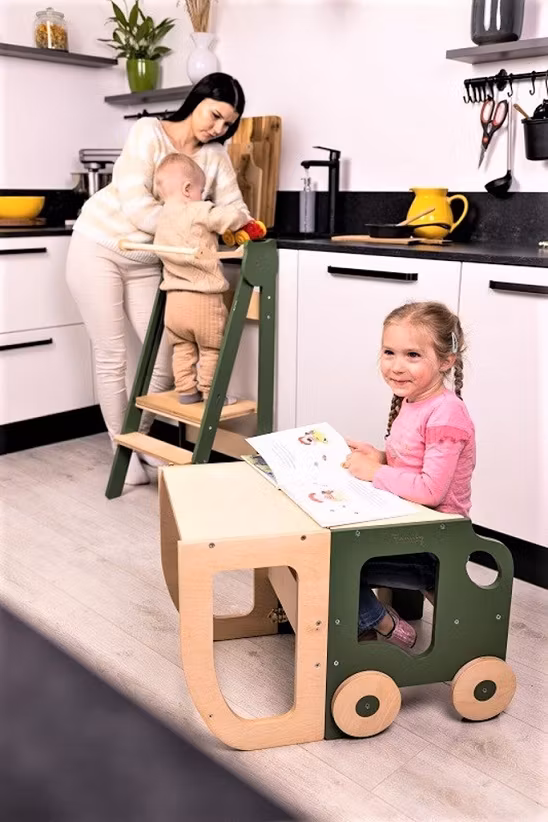 Bygbar læringstårn taburet bil, kaki/natur