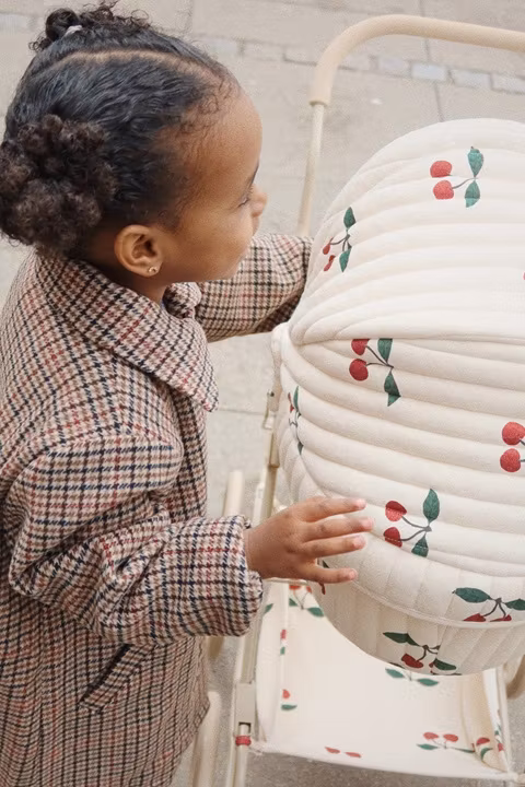 Det yndige stof er aftageligt og lavet af 100% økologisk bomuld.