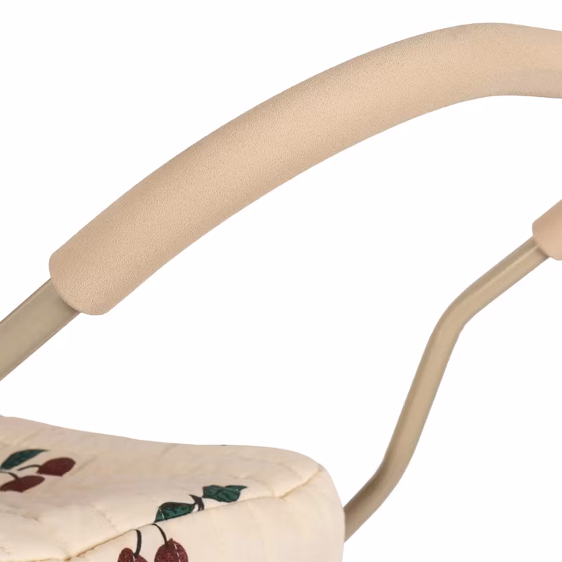 De fire store hjul i EVA-materiale garanterer stabil kørsel. Metalrammen har bløde håndtag for ekstra komfort.