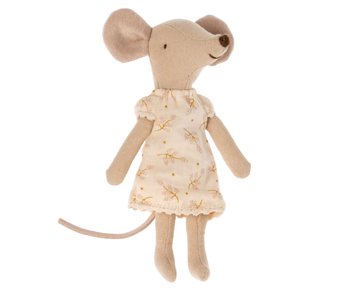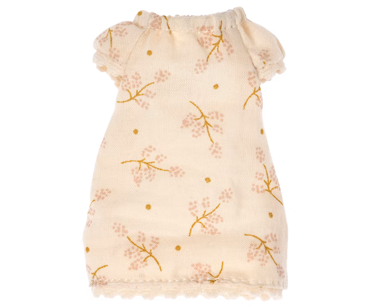 Klar din Storesøster Mus til en god nats søvn eller en hyggelig pyjamasfest med denne søde natkjole. Et utroligt detaljerigt og håndlavet produkt fra det populære firma Maileg.