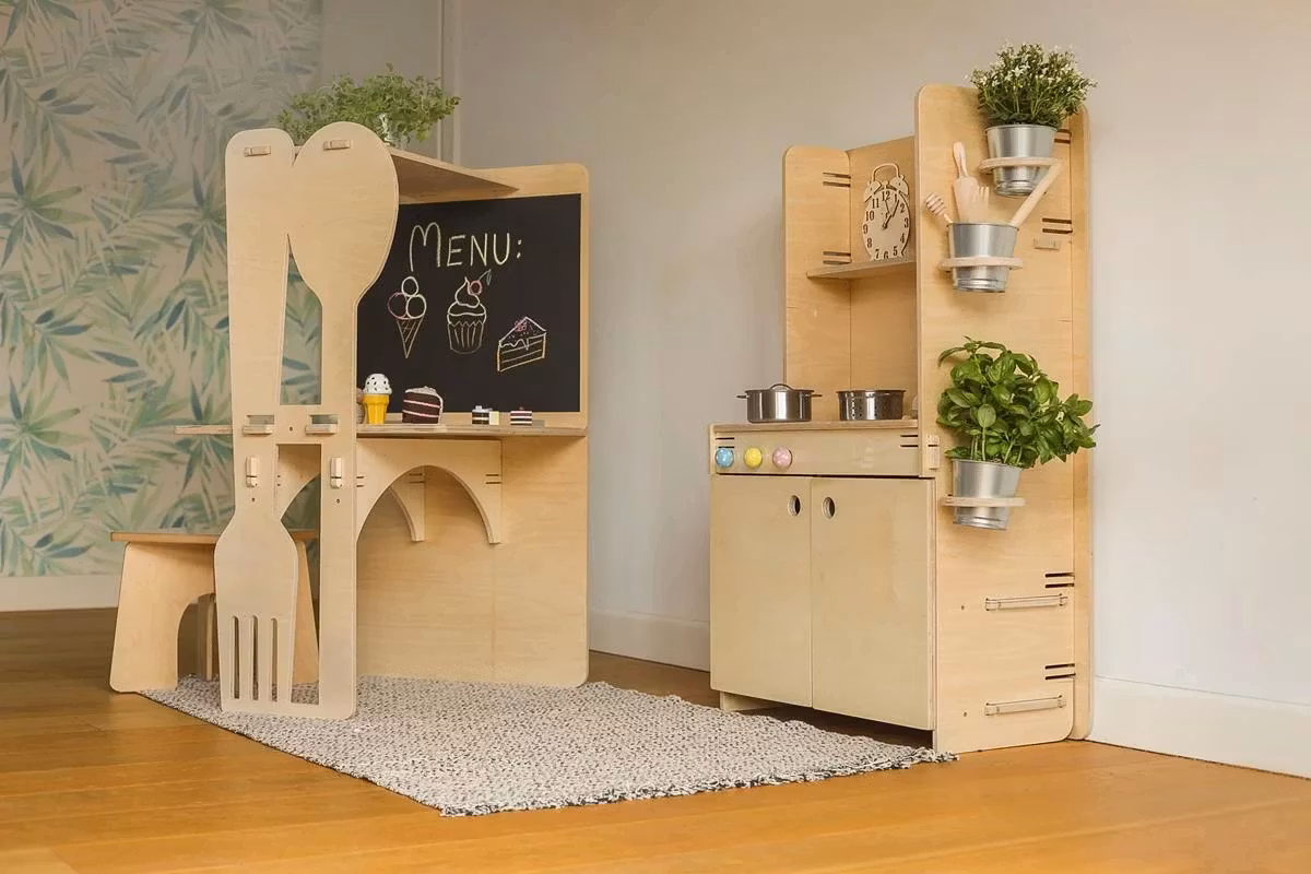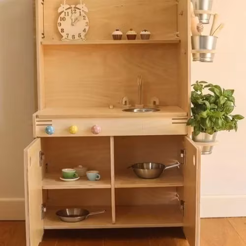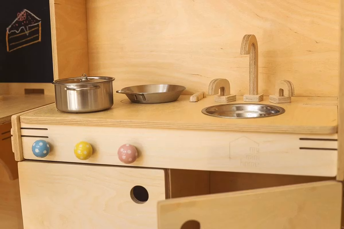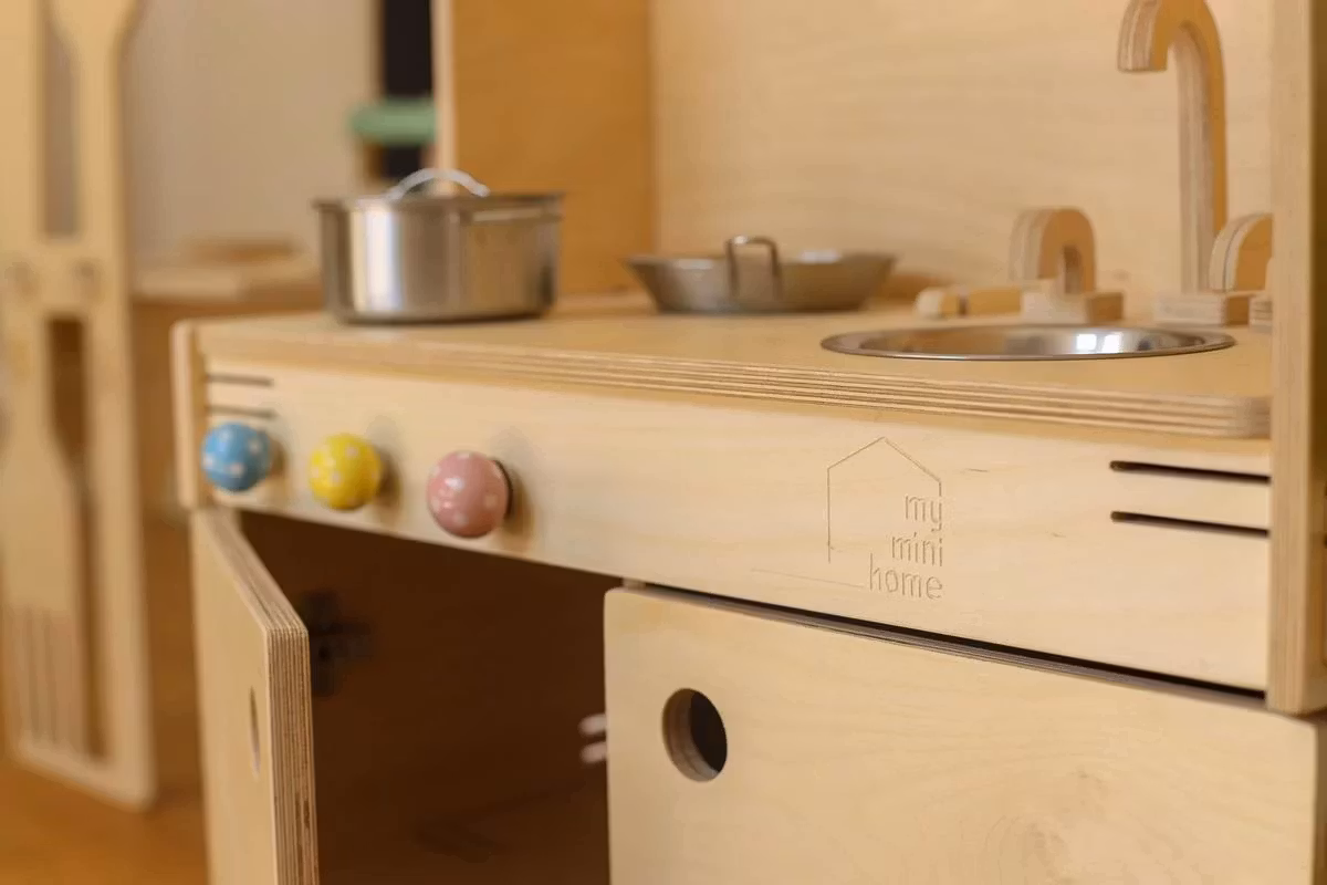 Dette store håndlavede minikøkken med legetøjskøkken og køkkenø fra My Mini Home, rummer mange muligheder!