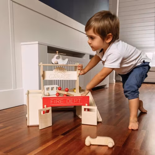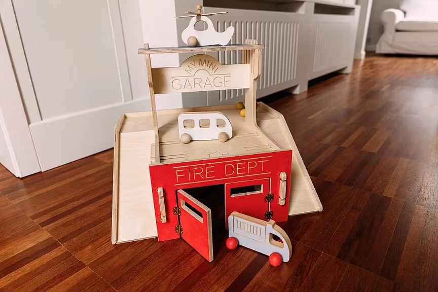 Denne håndlavede trægarage fra My Mini Home rummer mange muligheder for alle typer køretøjer.