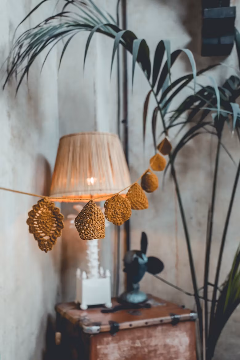 Denne smukke vimpelløkke med 12 yndige hæklede vimpler er den perfekte detalje til dit børneværelses indretning.