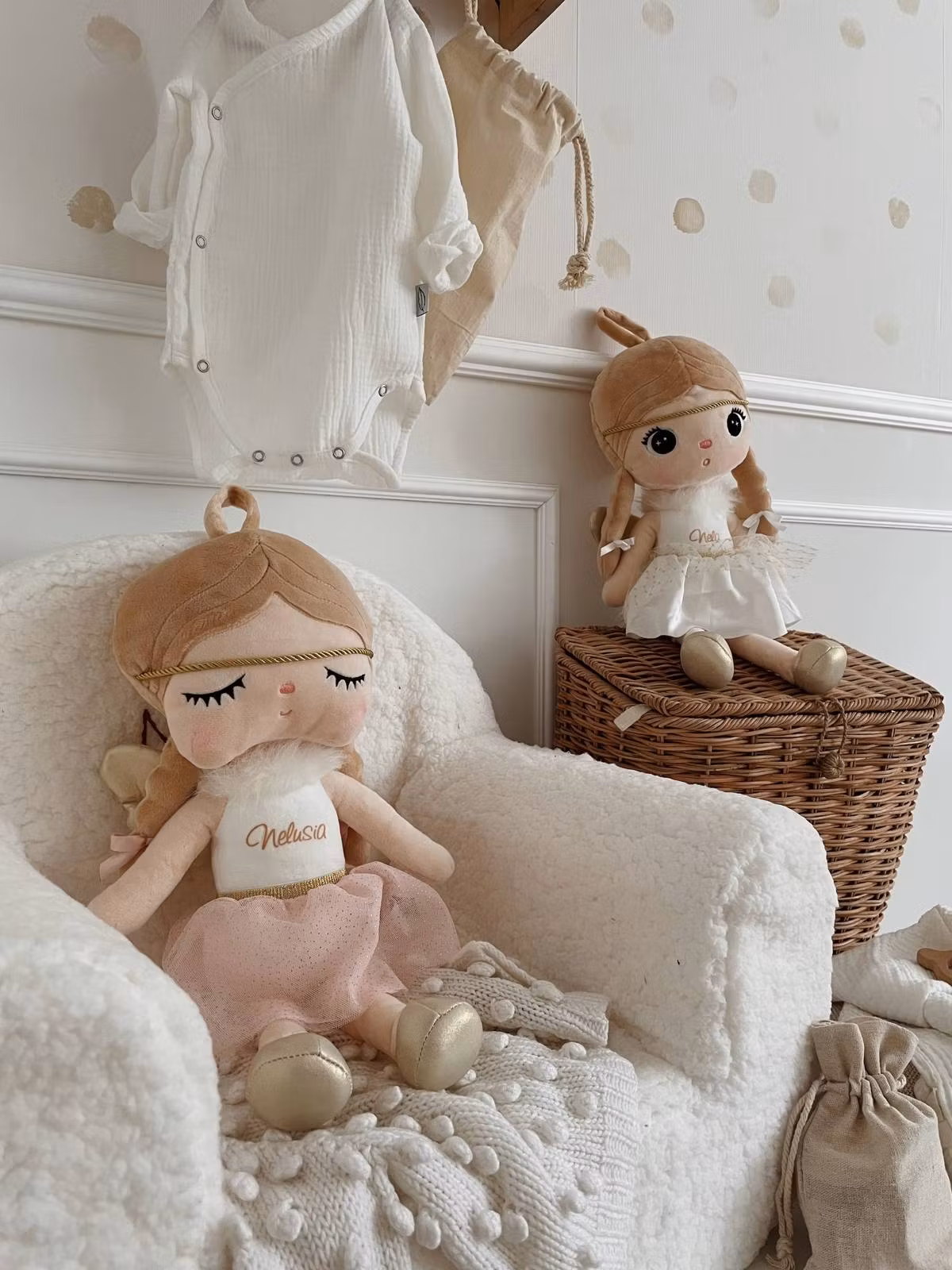 Sovende engel, stor dukke med navn
