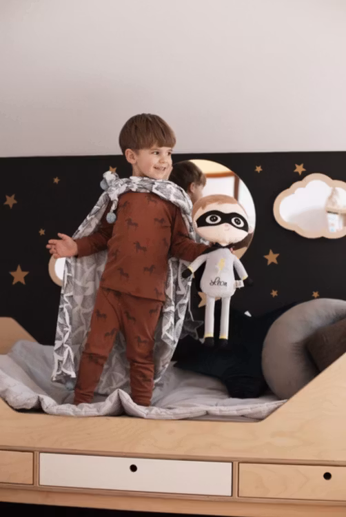 Dukken er lavet af 100% plys og kan vaskes ved 40 grader.