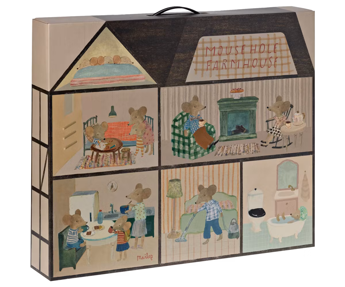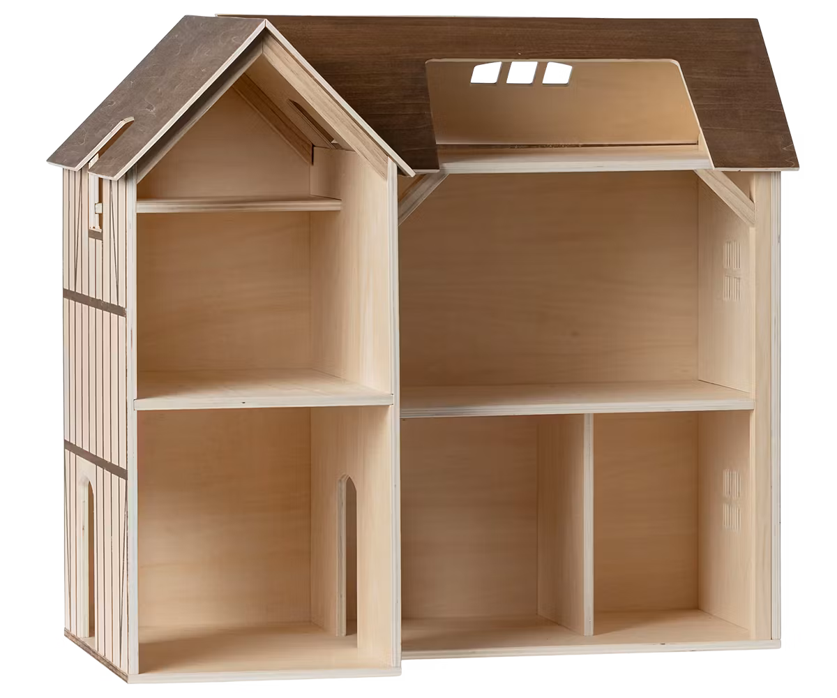 Et tidløst og fantastisk dukkehus med smukke vægge fra danske Maileg, som dit barn vil elske fra første øjeblik. Dukkehuset består af seks værelser og hems med superfine vinduer. Dette dukkehus vil, udover at være dit barns favorit, bidrage til en fantastisk indretning af banerummet. Dukkehuset kommer pakket og er nemt at samle. Glem ikke at supplere med Maileg kaniner, mus eller indretning i størrelsen Miniature. Mål: 56,5cm, 63cm, 36,5cm Materialer: Tre Merk! Kaniner, mus, møbler eller tilbehør medfølger ikke
