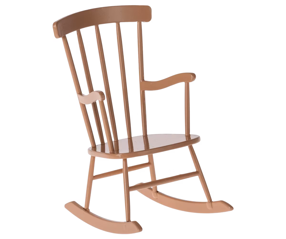 Vi mangler ord for denne stilfulde gyngestol, tilpasset til Maileg-kaniner. Utroligt detaljeret produkt fuldstændig håndlavet af det populære firma Maileg. Mål: højde 12 cm Alder: Fra 3 år. Materiale: Metal