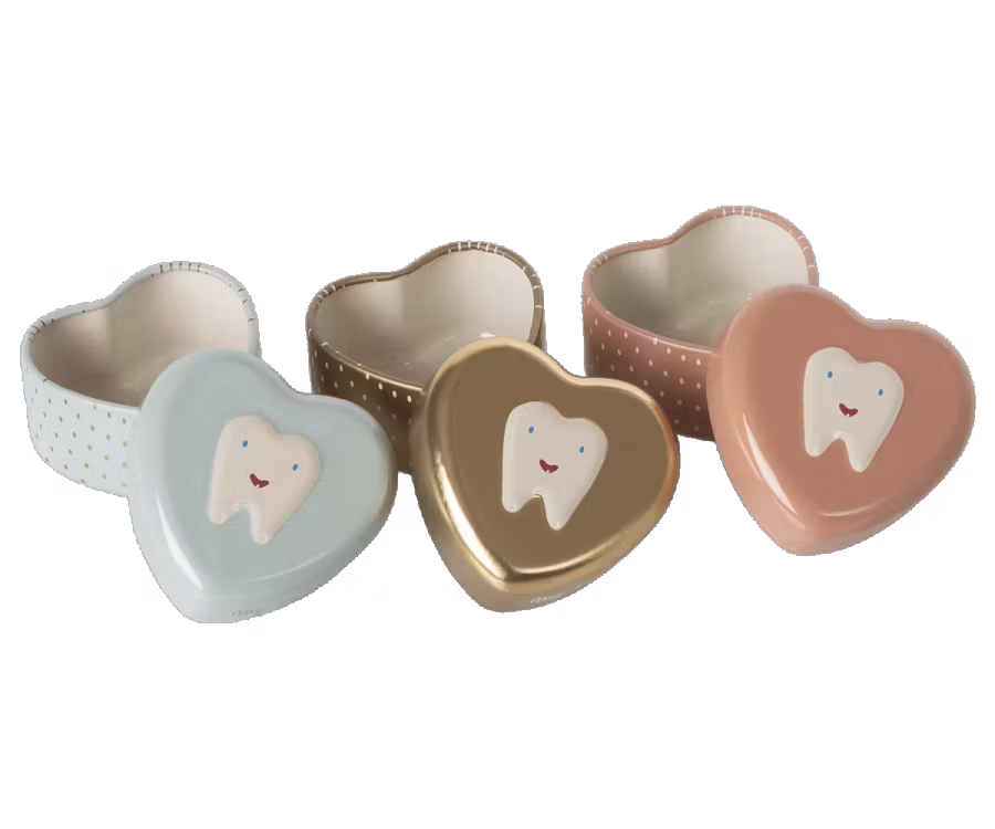 Gør tandfeen glad med denne fantastiske hjerteformede tandbørste fra det populære danske firma Maileg! Fås i tre farver: blå, bronze og pink. Utroligt detaljeret produkt fuldstændig håndlavet af det populære firma Maileg. Mål: 2 x 5 cm Materiale: Metal. Alder: Fra 3 år.