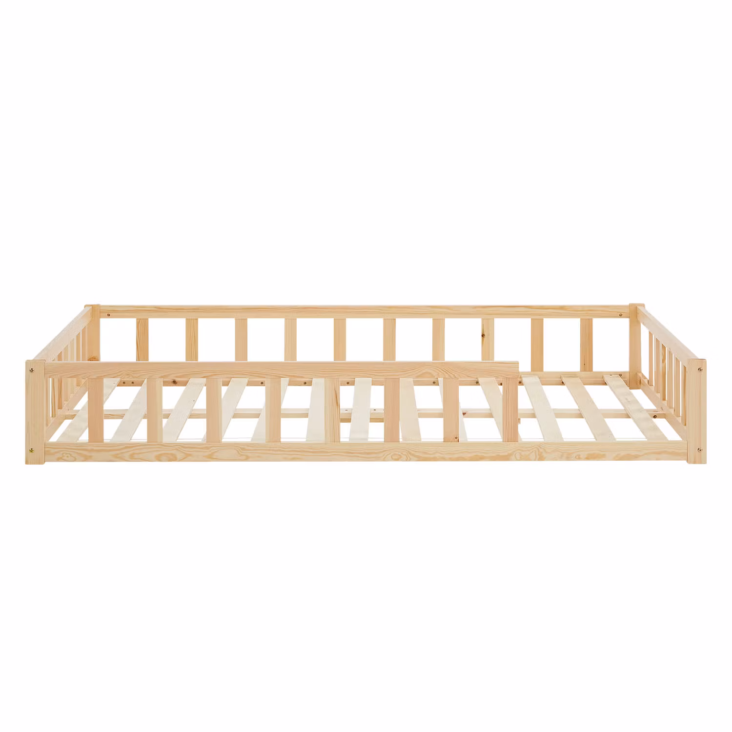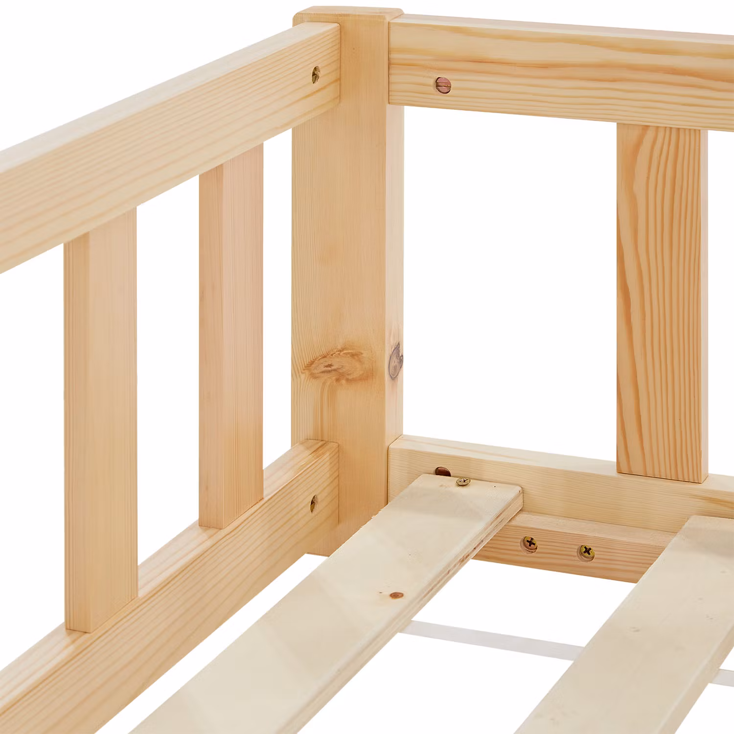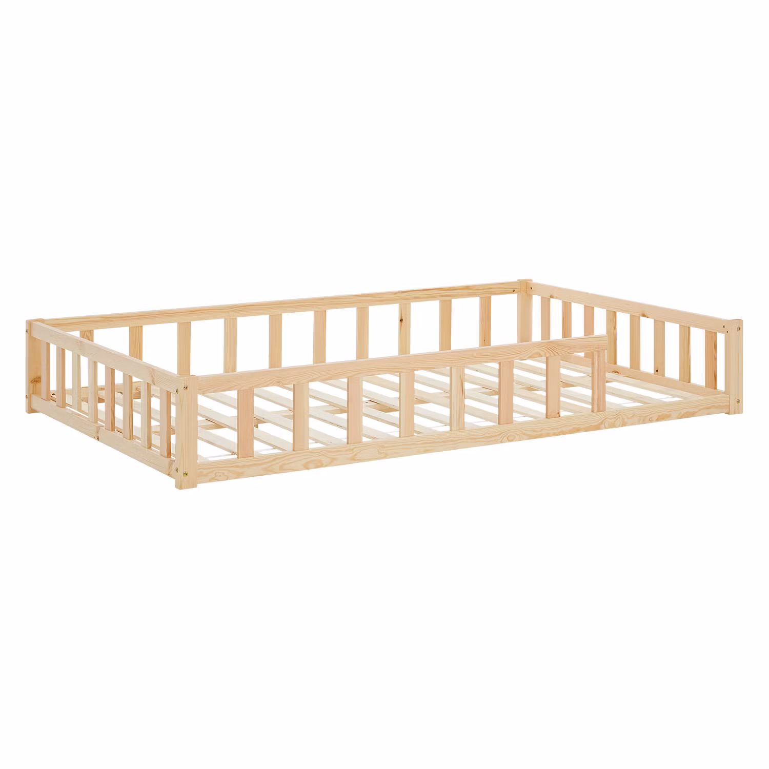 Montessori natur børneseng med beskyttelseskanter, 120x200 cm