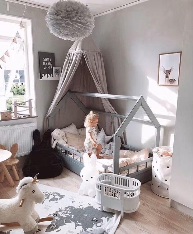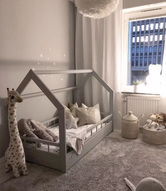 Denne stabile husseng m. tremmer er perfekt, når det er tid til at skifte tremmesengen ud med en juniorseng.