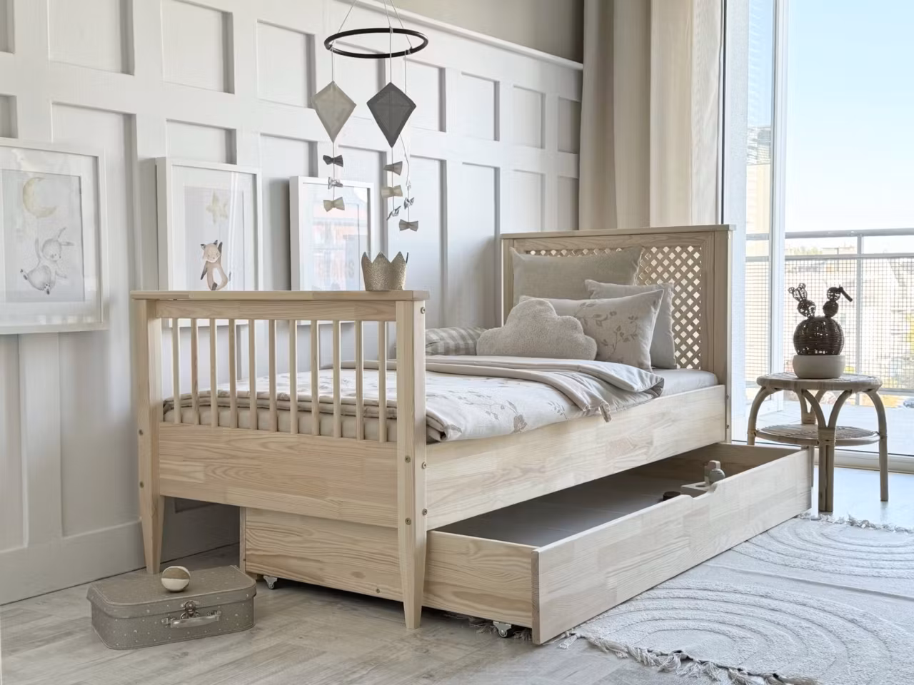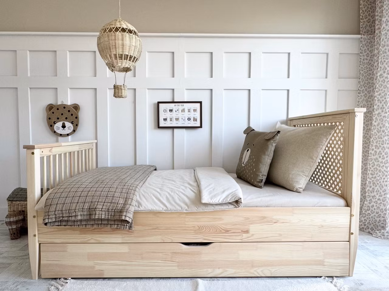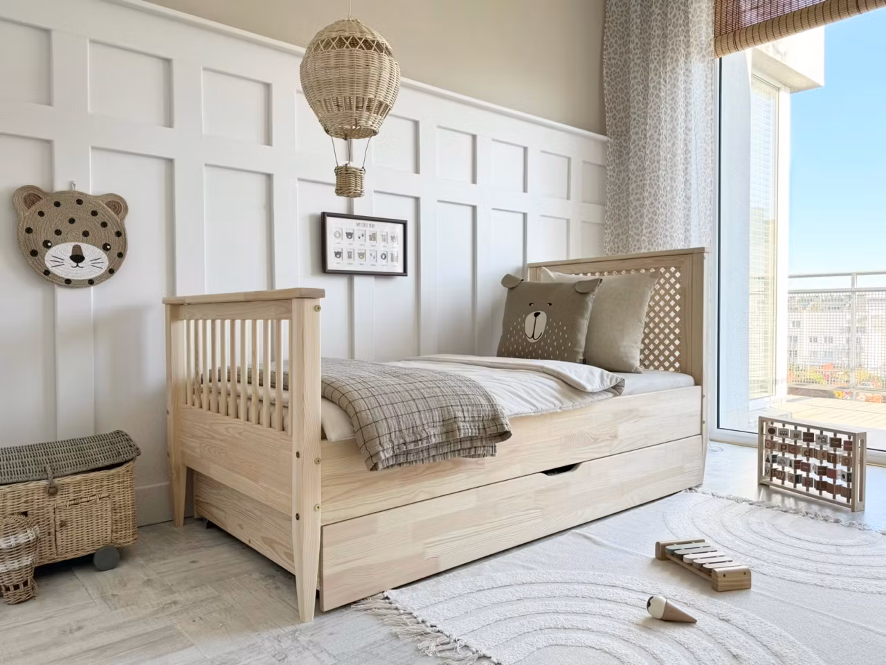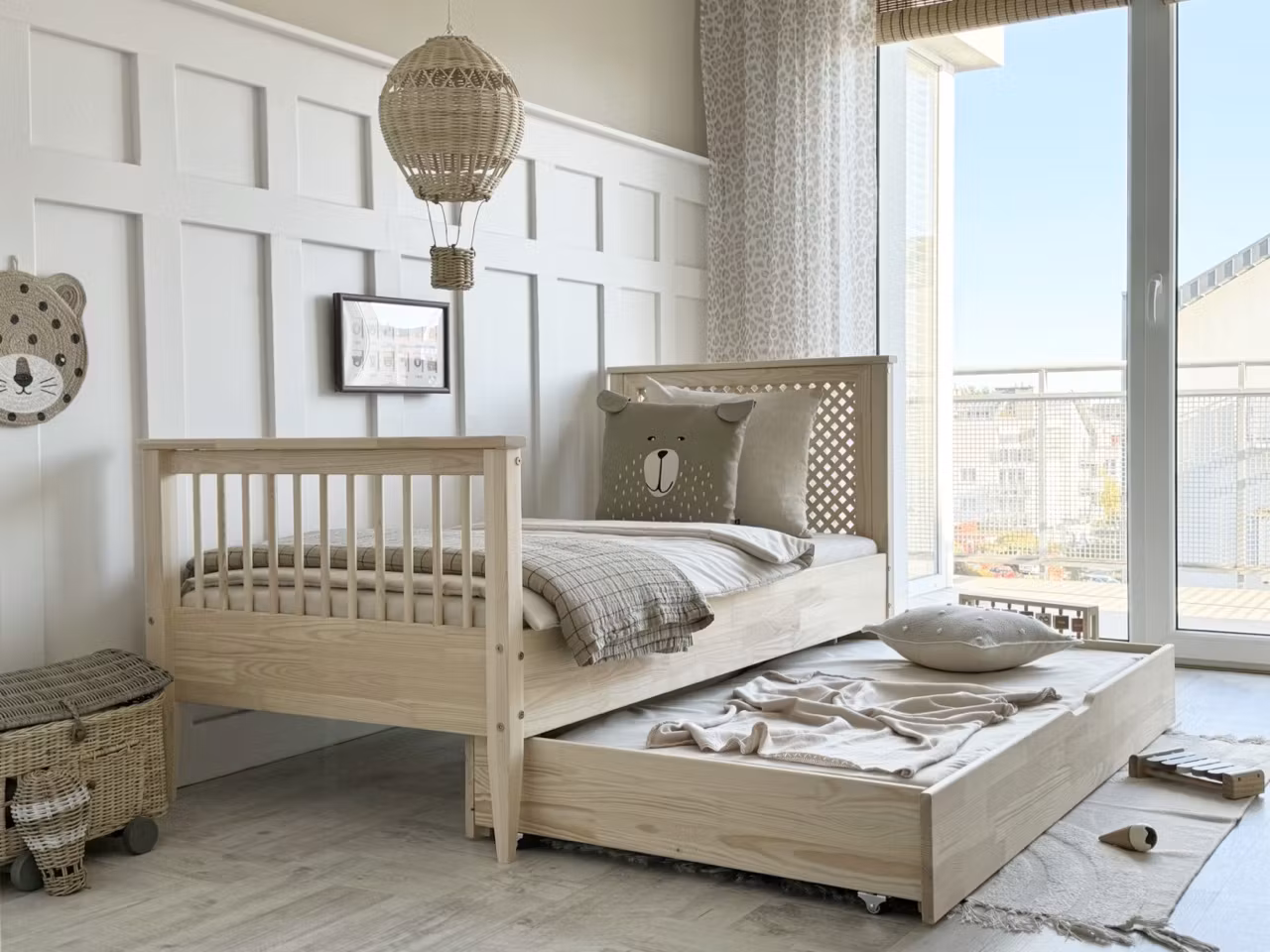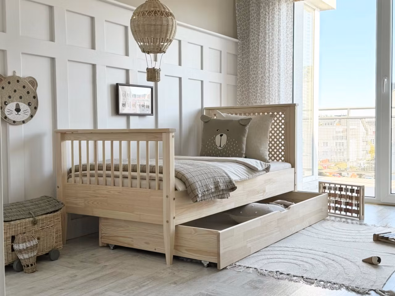 Barneseng BOHO med opbevaringsskuffe/ekstraseng