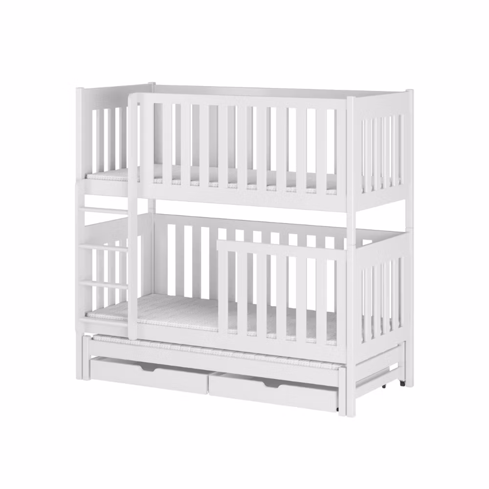 Hvid køjeseng med opbevaring og tre senge, Ebba 90x200 cm