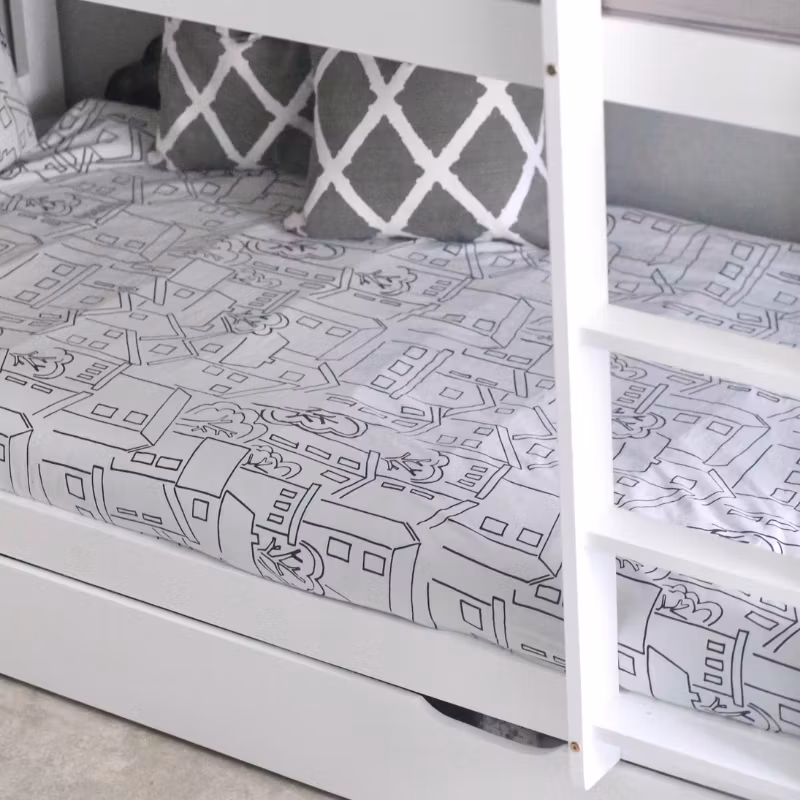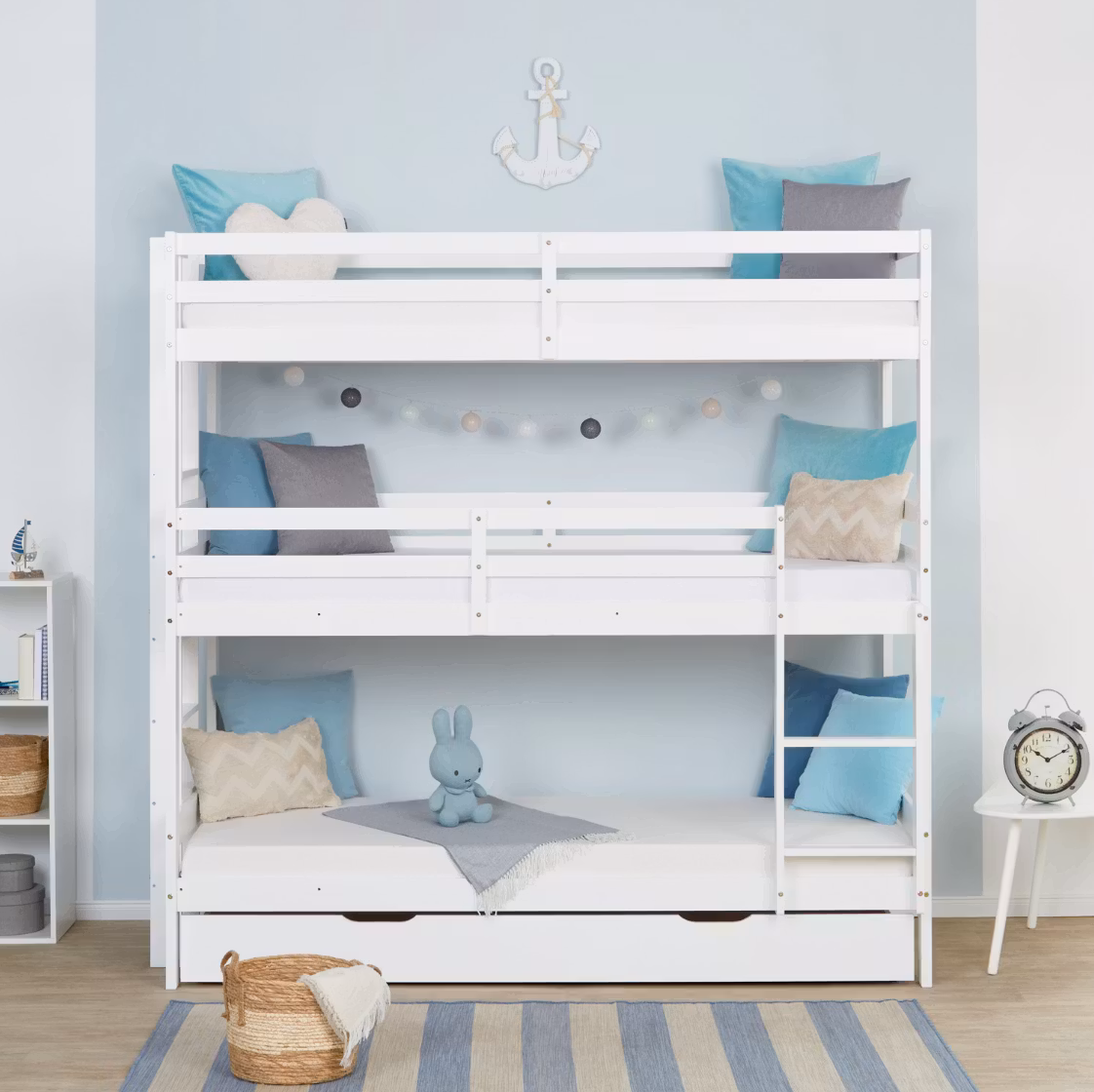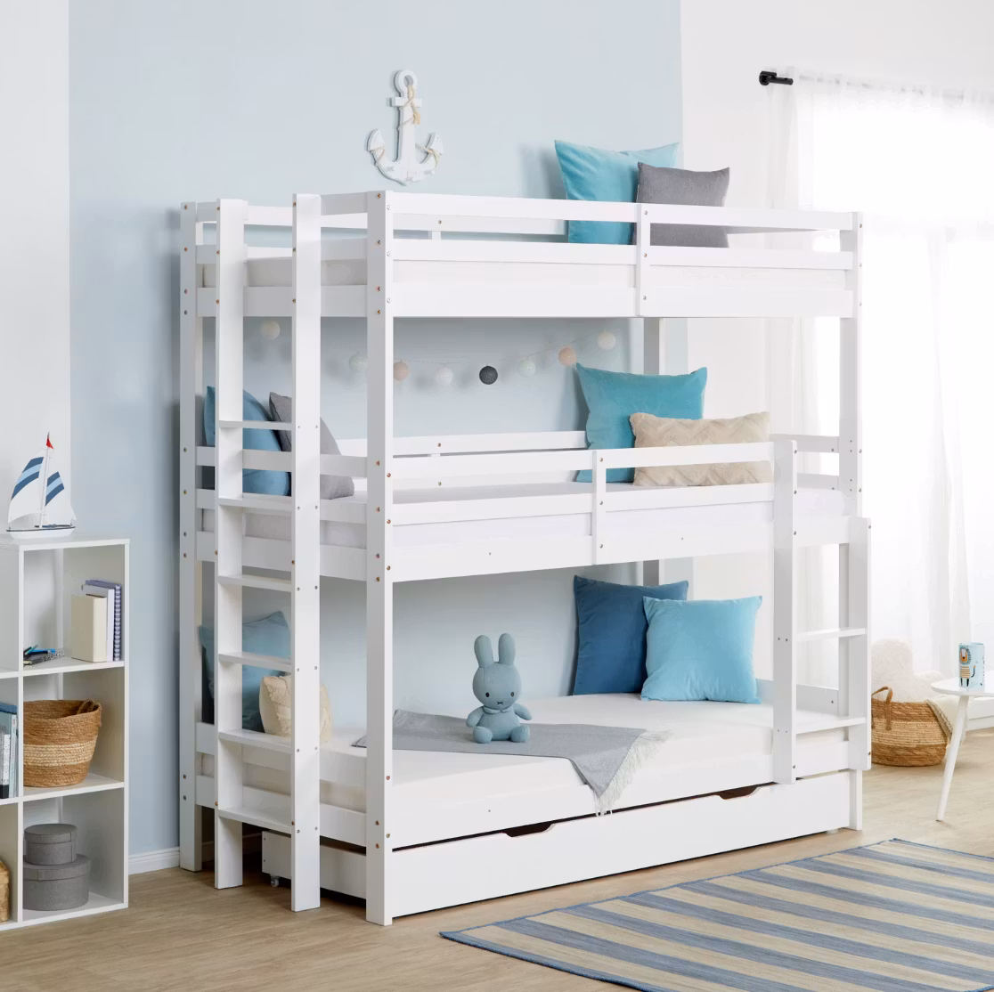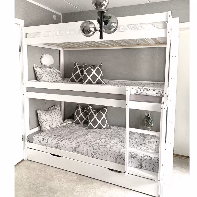Denne fantastiske køjeseng og søskende seng er håndlavet med stor passion i fyrretræsfiner af høj kvalitet.