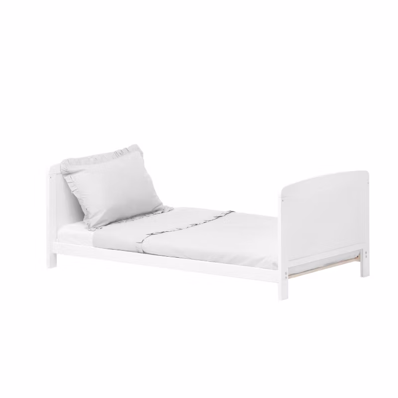 En klassisk hvid tremmeseng, der vokser med barnet og nemt forvandles fra tremmeseng til juniorseng eller en lækker børnesofa.