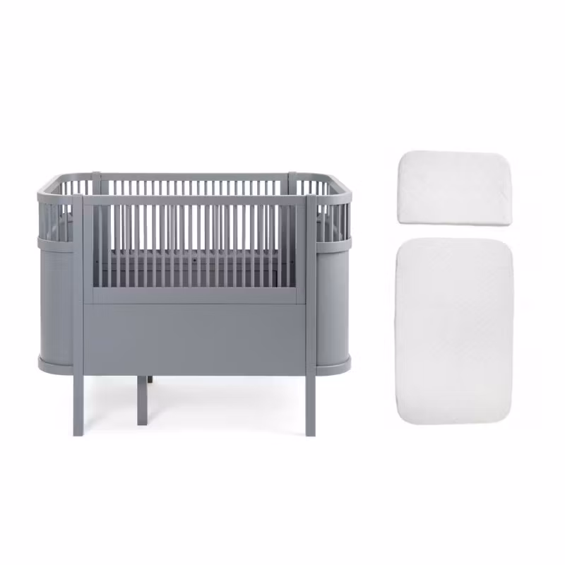Madrassen er udtrækbar, hvilket betyder, at den passer til både tremmesengen og juniorsengen. Madrassen kommer i to dele; 110x70 cm og 40x70 cm, når det er tid til at bruge den som juniorseng. Betrækket er lavet af økologisk bomuld.