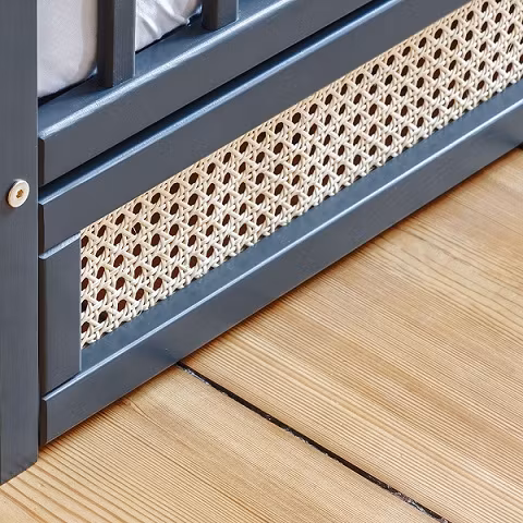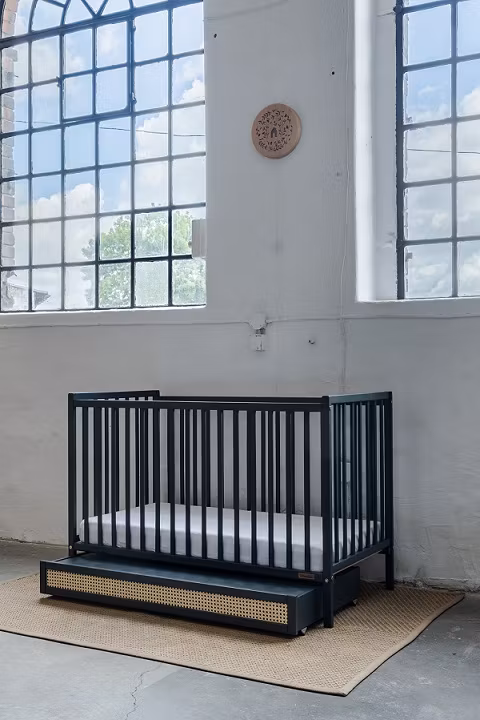 Denne fine tremmeseng kan tilpasses barnets udviklingstrin, blandt andet gennem fire niveauer på sengebunden. Når barnet er stort nok til selv at komme ind og ud af sengen, kan tre lameller også tages af. Unikt og praktisk!