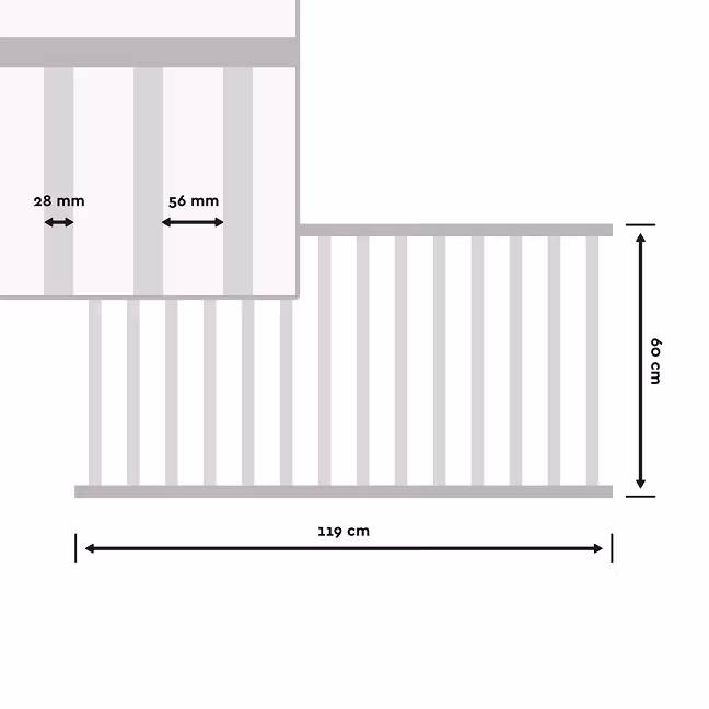 Denne fine tremmeseng kan tilpasses barnets udviklingstrin, blandt andet gennem tre niveauer på sengebunden. Når barnet er stort nok til selv at komme ind og ud af sengen, kan tre lameller også tages af. Unikt og praktisk!