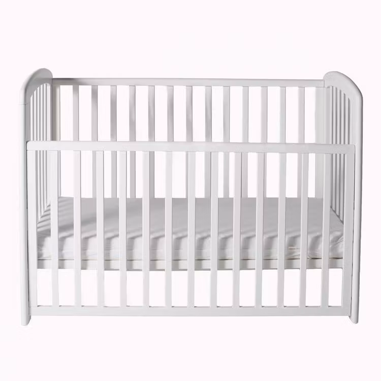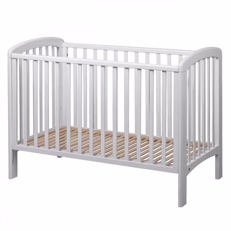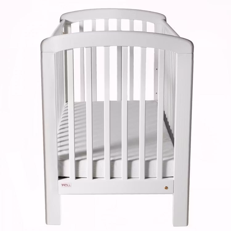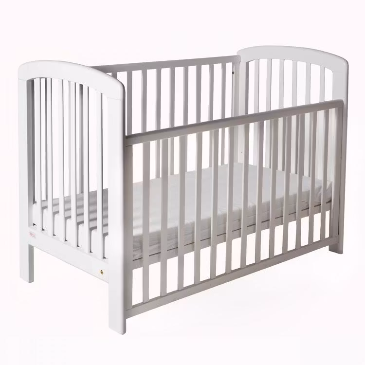 Lux er navnet på denne stilfulde tremmeseng med en smart "dropside", hvilket betyder, at den har en langside, der kan hæves og sænkes.