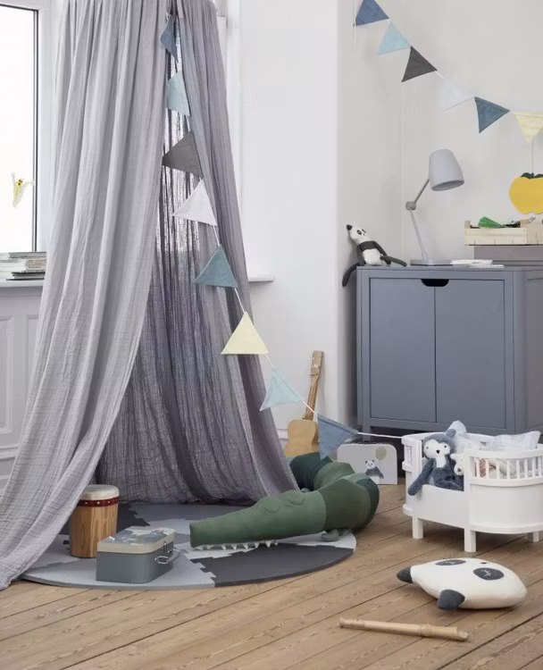 Vær kreativ og hæng den over en seng eller et godt sted på børneværelset. Indeni er der en praktisk krog, som gør, at du nemt kan hænge en passende sengemobil i den. Eller lad fantasien løbe løbsk og kombiner børnehjørnet med det, du synes passer!