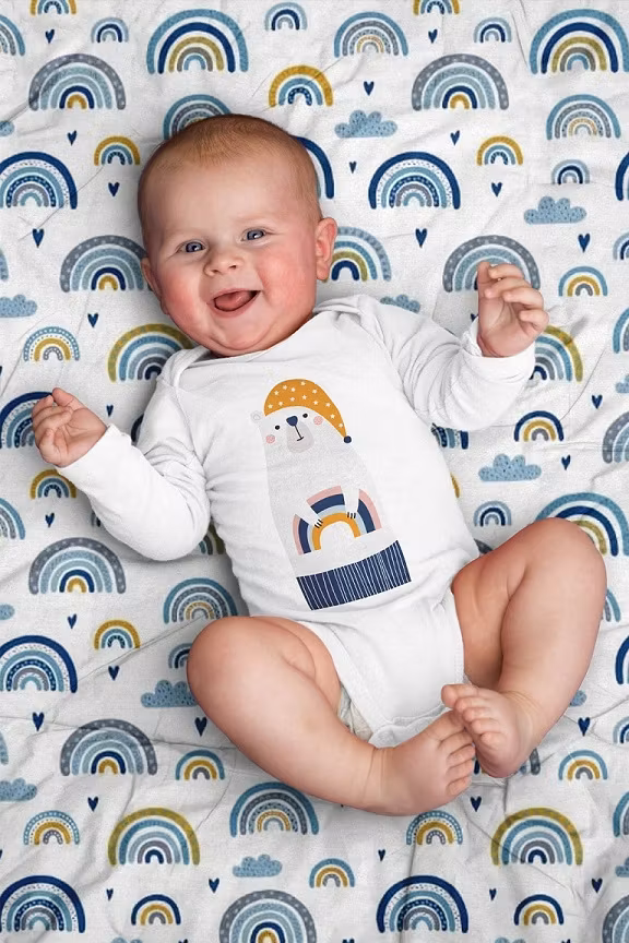 Stræklagen til barnevogn/vugge, Happy Blue Rainbow